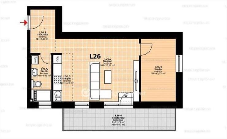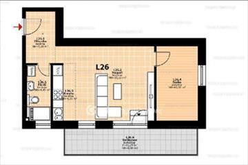 Az ajánlott első emeleti lakás 44 m2 -s és 11, 3 m2-s terasszal rendelkezik. Az ingatlanban található egy amerikai konyhás nappali, 1 hálószoba, valamint fürdő + WC.