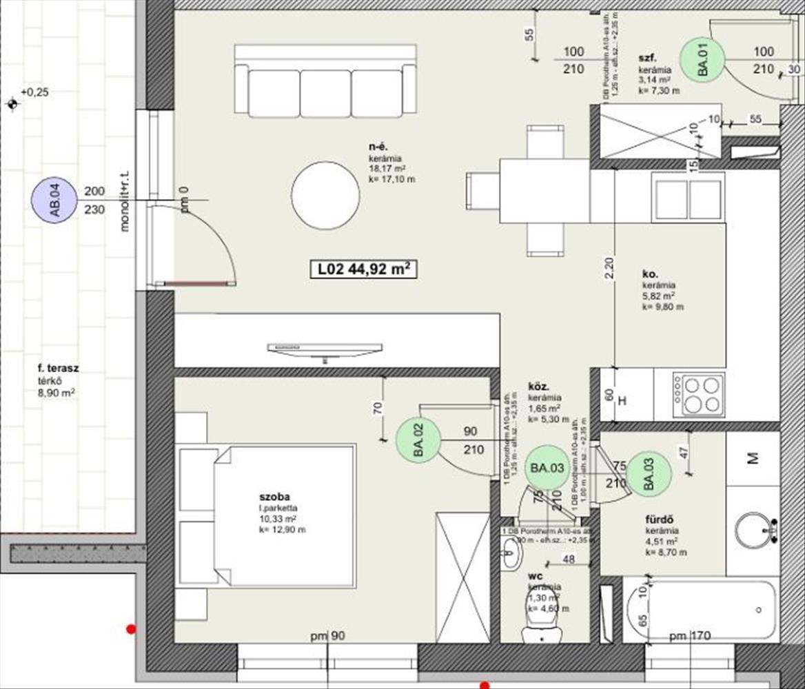 Az l07 1. Emí lakás hasznos alapterülete 56, 99 nm , 6, 36 nm terasz.