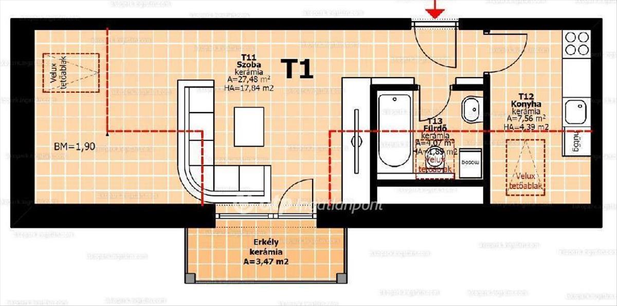 Az ajánlott második emeleti tetőtéri lakás 39, 1 m2 + 3. 5 m2 terasszal rendelkezik. Az ingatlanban található egy nagy nappali terasszal, konyha, valamint fürdő + WC.