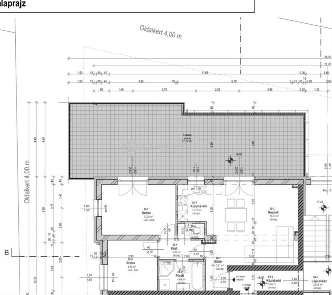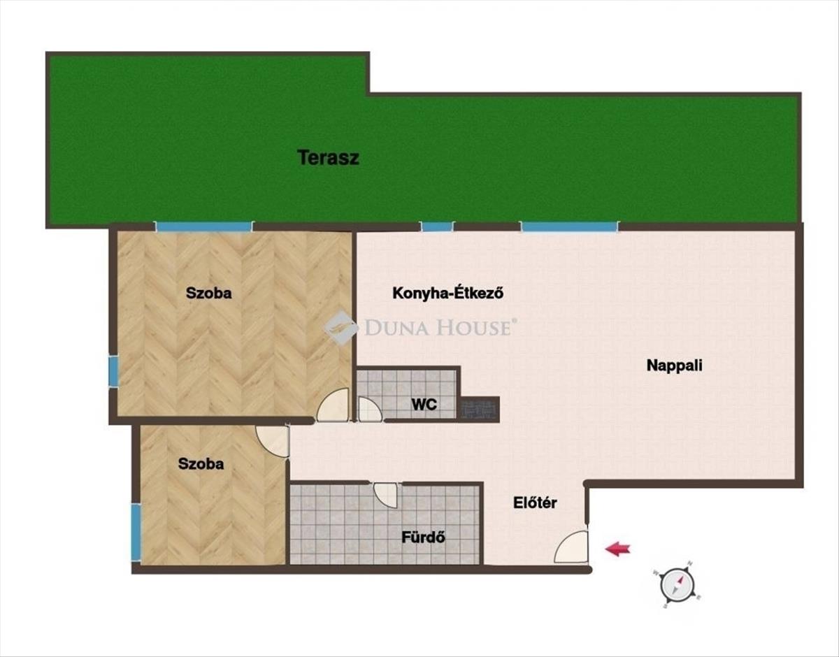 A 62, 79 m²-es lakáshoz egy kiemelkedő méretű, 57, 71 m²-es panorámás terasz tartozik, amely kivételes életteret biztosít a mindennapokban.