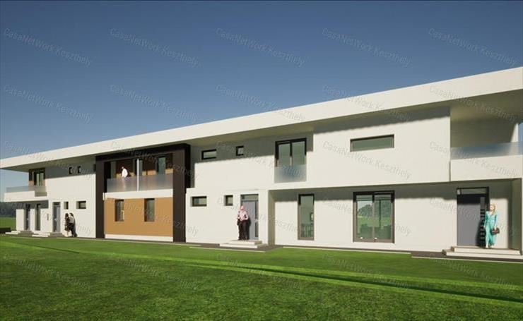 épülő, lapostetős, hőszivattyúval ellátott, négylakásos társasházban