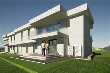 épülő, lapostetős, hőszivattyúval ellátott, négylakásos társasházban