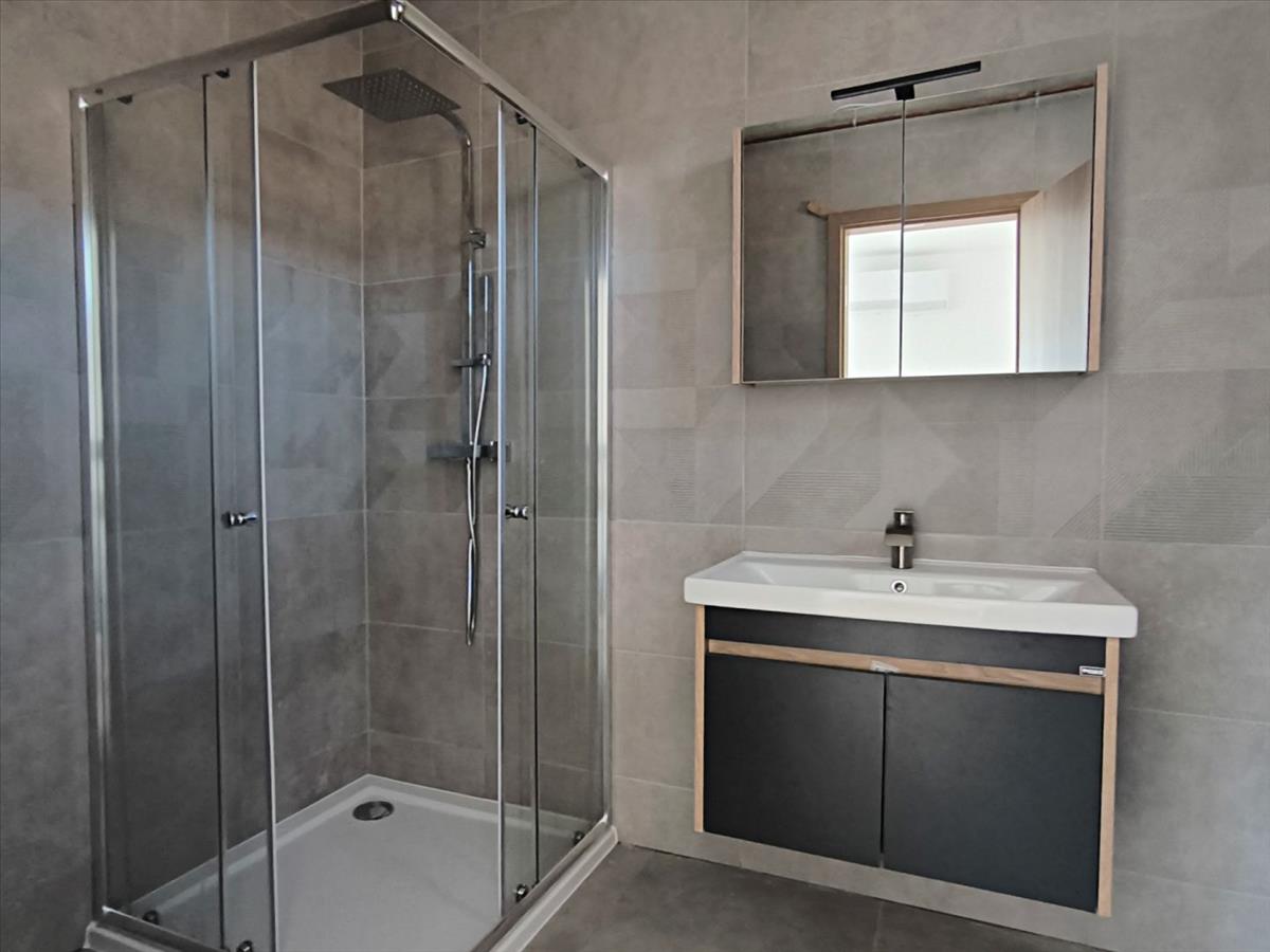 A lakás alapterülete összesen 55, 93 m2, amelyhez egy 9, 33 m2-es terasz tartozik. a lakáshoz tartozik még egy térkövezett, zárt udvari kocsibeálló is. a lakás helyiségei: hatalmas étkező-konyha, nappali, 1 hálószoba, fürdő, wc kézmosóval, előszoba.