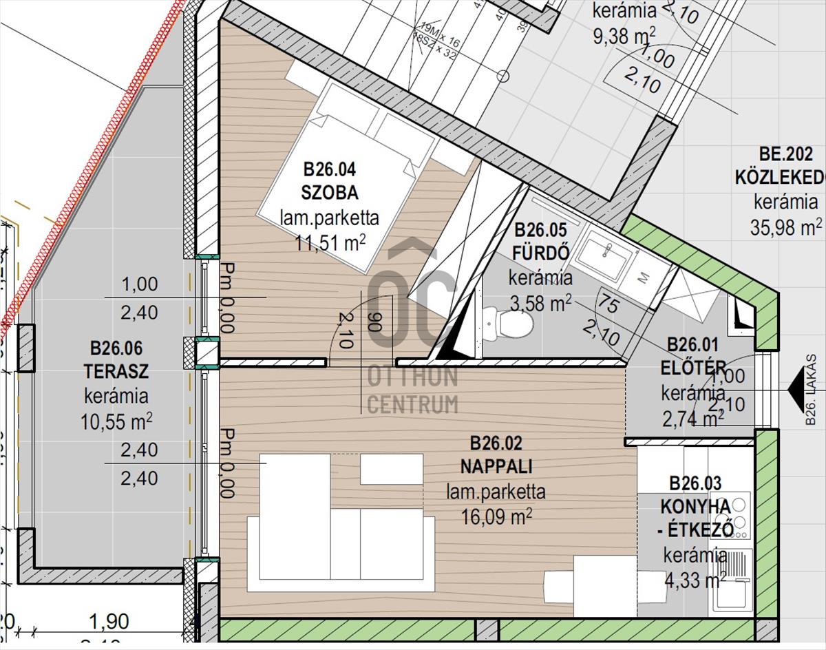 Szobák: Laminált parketta, 10. 000 Ft+áfa/ m²