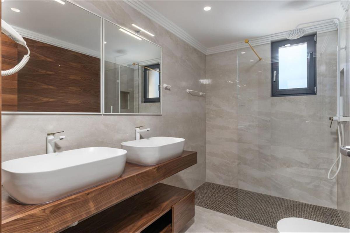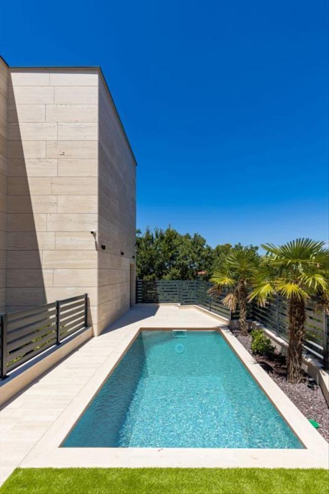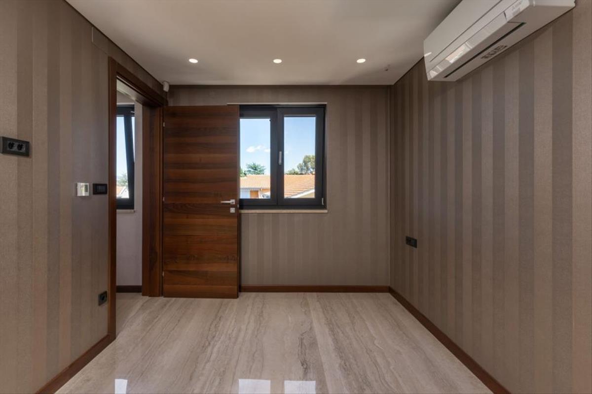 Az épület minőségi anyagokkal van felszerelve, padlófűtés, hűtéses Mitsubishi klímás beltéri egységek minden helyiségben, külső asztalos nagy tolófalakkal (emelő csúszó), a padlót minőségi porcelán mennyezet borítja, álmennyezet beépített világítással, biztonsági ajtók olasz gyártó (Diere), szobaajtó diófából szintén az olasz Diere gyártó, külső homlokzata szellőző római kő Travertin.