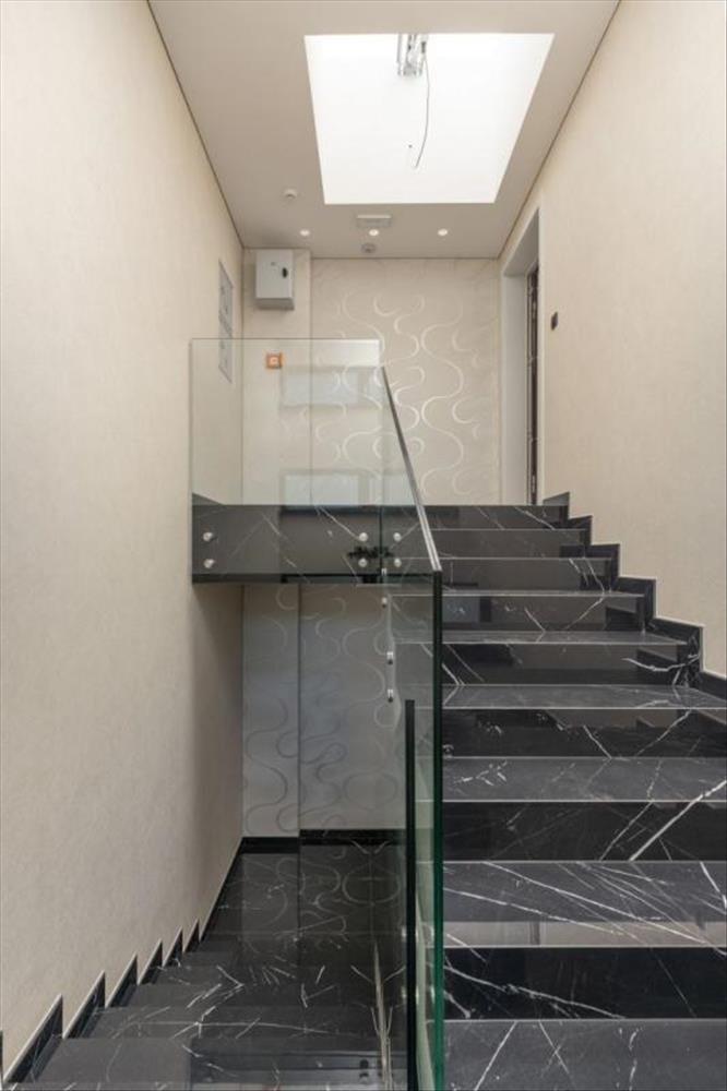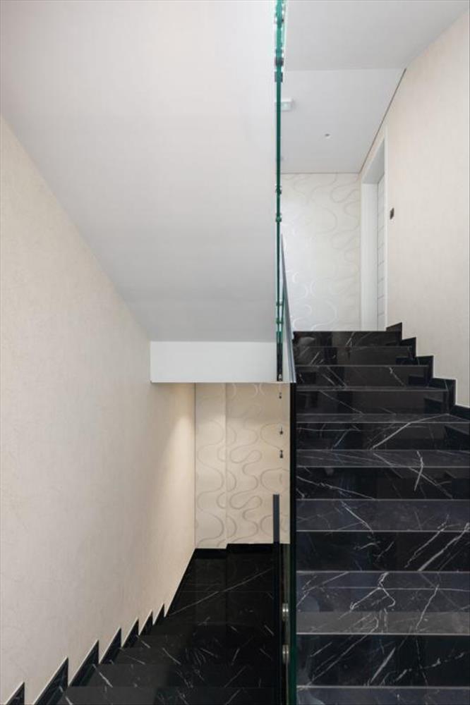 A fantasztikus kortárs építészetű épület háromszintes, egy lakóegységgel.