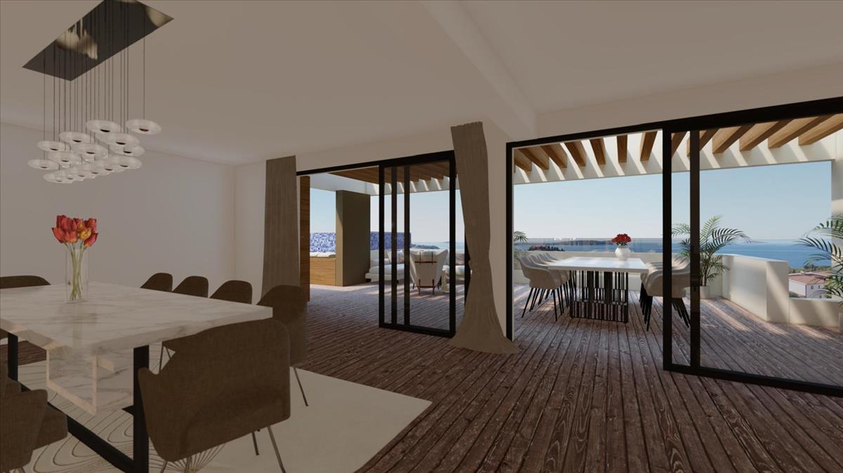 A 263 m² alapterületű, gyönyörű penthouse tágas, elegáns elrendezést kínál: egy nagy nappali konyhával és étkezővel, három kényelmes hálószoba, három luxusfürdőszoba, egy vendég wc és egy tároló helyiség. a tágas teraszon medence és napozórész is található, amely ideális a naplemente és a friss tengeri levegő élvezetéhez. a kényelem érdekében a penthouse saját, kétállásos garázzsal és egy további szabadtéri parkolóval rendelkezik.