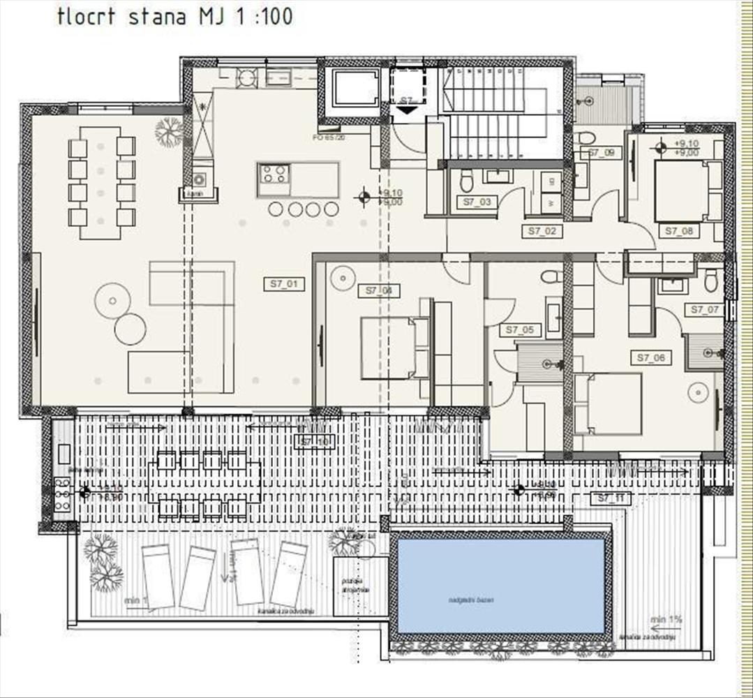 s7 (Penthouse, 263, 27 m²) : Nappali, konyha-étkező, előszoba, vendég wc, 3 hálószoba, 3 fürdőszoba, loggia, terasz napozóval, medence, tároló, saját kétállásos garázs, szabadtéri parkoló. Ár: 1 325 000 € Ref: RE-LB-IRO1923