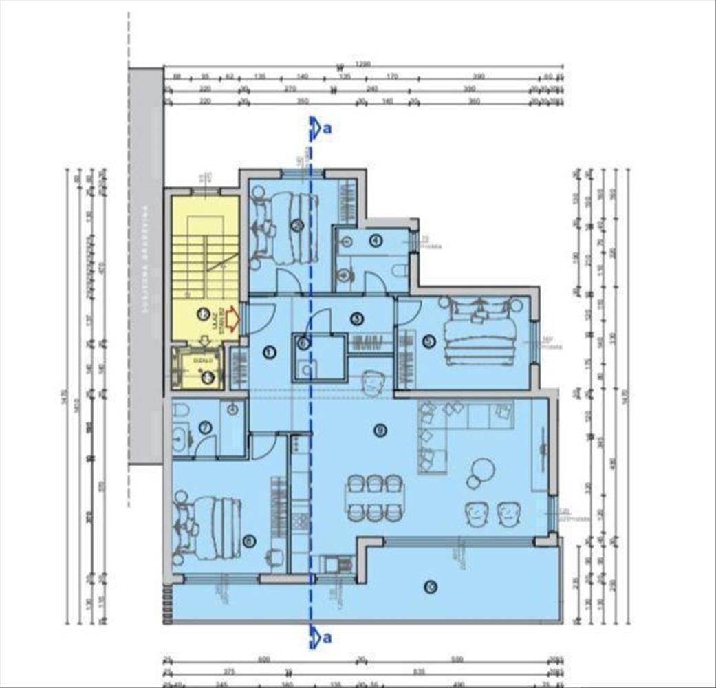 Az apartmanban 3 hálószoba + nappali található, teljes lakóterülete 128, 40 m2.
