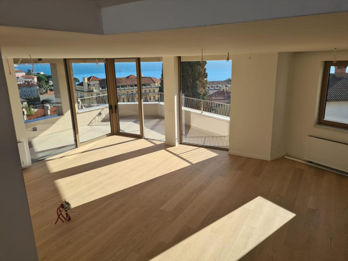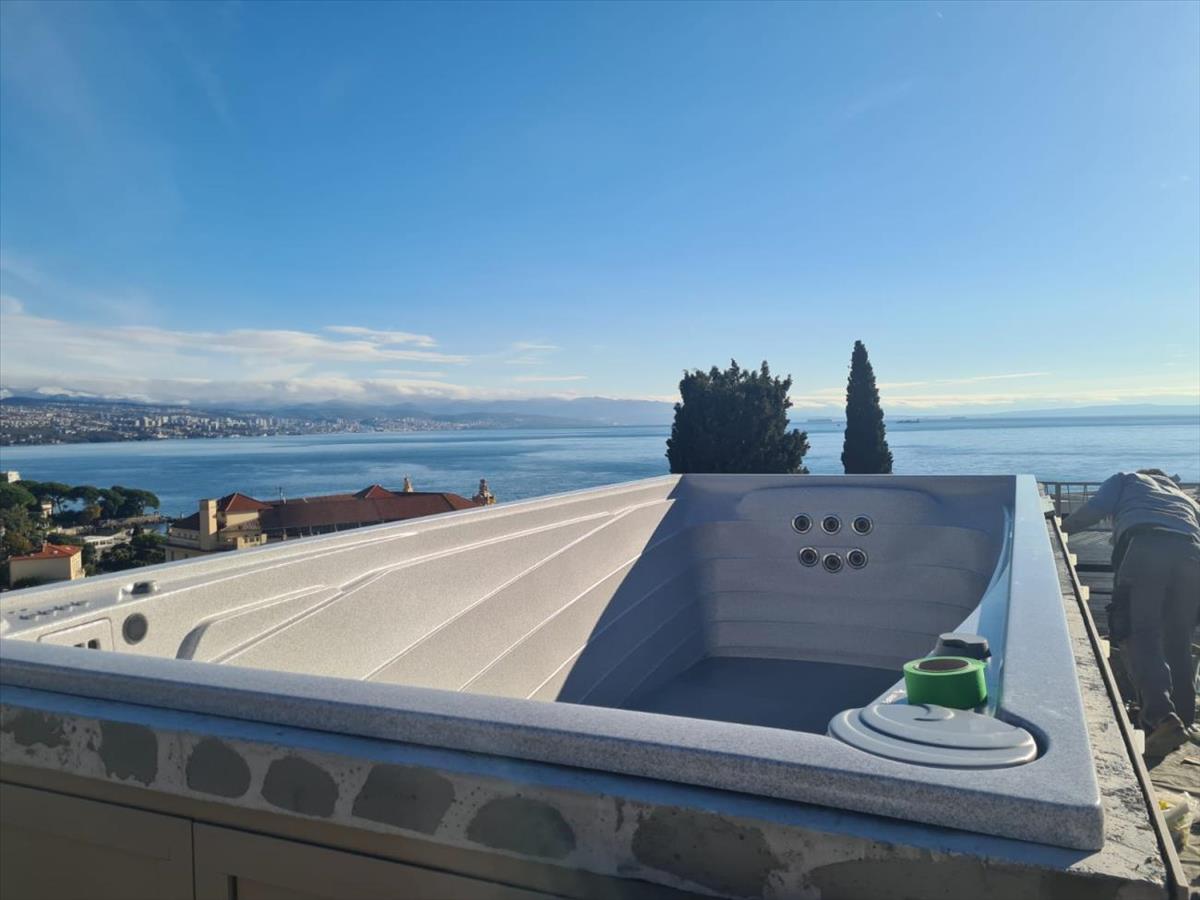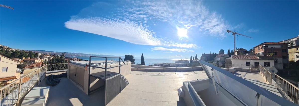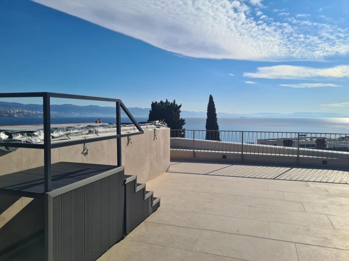 Luxus duplex penthouse Abbáziában, egy újonnan épült rezidenciában, panorámás kilátással a tengerre. Az apartmanban három hálószoba, három fürdőszoba, csodálatos szalon konyhával, csodálatos teraszok találhatók.