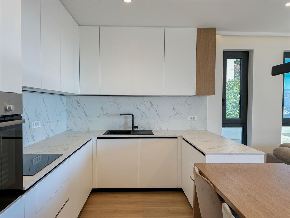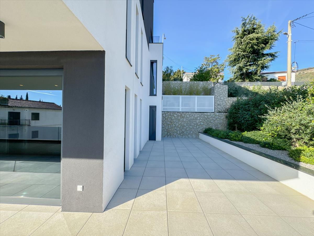 Az épület saját garázzsal rendelkezik, amely két fenntartott parkolóhellyel és további tárolóval rendelkezik. a nappaliból panorámás kilátás nyílik az Adriai-tengerre és a bájos környező tájra az időtlen szépség és az exkluzivitás érzetét idézi.