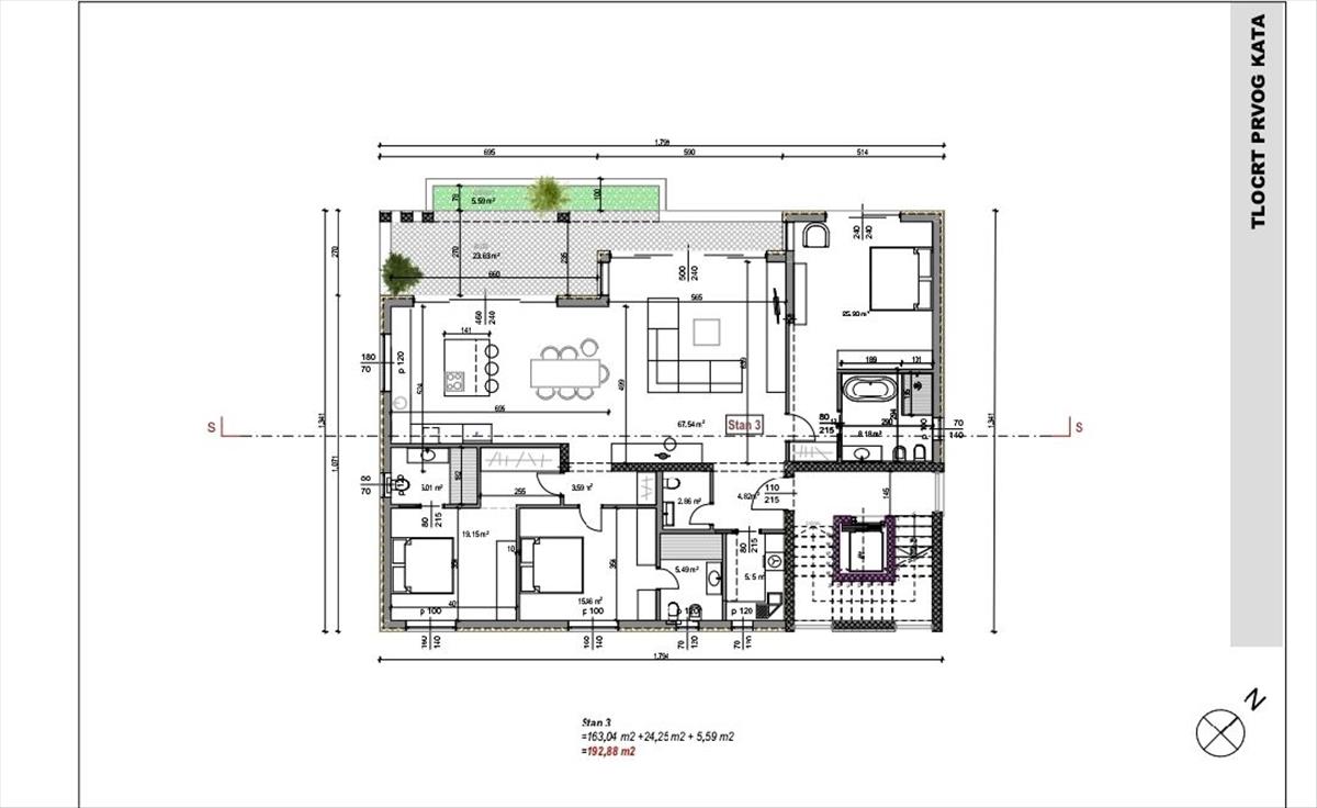 Ez az exkluzív gyöngyszem Isztriában egy butiképületben helyezkedik el, amely mindössze négy prémium egységet tartalmaz, alagsori garázzsal és sima lifttel a kényelmes hozzáférés érdekében, tökéletes keveréket kínálva a magánélet és a felső kategóriás életstílus között azok számára, akik prémium lakásokat keresnek a tenger közelében Rovinjban - Horvátország egyik legfényűzőbb tengerparti menedékhelyén. Fedezze fel ezt az elegáns, 192, 88 négyzetméteres lakást Rovinjban, ahol a gondosan megtervezett elrendezés zökkenőmentes átmenetet teremt a barátságos előszobából három nyugodt hálószobába, mindegyik saját fürdőszobával a kényelem és a praktikum érdekében. Egy praktikus vendég wc és egy hasznos mosókonyha segít a mindennapi élet megszervezésében, míg a lakás szíve - egy elegáns konyha, amely egy napfényes étkezőre és egy tágas nappalira nyílik - meghívja a kellemes összejövetelekre és családi pillanatokra.