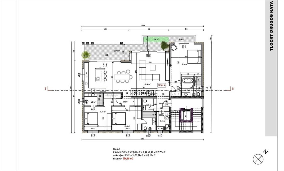 Ez a prémium gyöngyszem Isztriában egy butik lakóépületben várja, amelyben mindössze négy exkluzív egység található, a legmagasabb szintű magánéletet és kifinomultságot kínálva azok számára, akik a tengernél keresnek csúcsminőségű lakásokat Rovinjban – Horvátország egyik legkeresettebb tengerparti célpontjában, amely híres a fényűző hangulatáról és a végtelen mediterrán vonzerejéről. Lépjen be ebbe a tágas duplex lakásba Rovinjban, ahol az elegancia találkozik a mindennapi kényelemmel, két szinten, amelyeket egy privát belső lépcsőház köt össze. a belépési szinten – a lakás első emeletén – egy barátságos előszoba fogad, amely egy vendég WC-be és egy praktikus mosókonyhába áramlik, három nyugodt hálószobával, mindegyik saját fürdőszobával a maximális kényelem érdekében, egy elegáns konyhával, amely egy napfényes étkezőre nyílik, és egy grandiózus nappalival, amely az emelet teljes 163 négyzetméterét lefedi. Itt hatalmas üvegfalak teremtik meg a zökkenőmentes kapcsolatot a kültérrel, közvetlenül egy tágas, 29 négyzetméteres fedett teraszra vezetve, amely tökéletes a szabadtéri vacsorákhoz vagy naplementés italokhoz az isztriai ég alatt. Feljebb lépve a lépcsőn, a felső szinten egy második konyha és egy hívogató nappali teremt kellemes környezetet a pihentető összejövetelekhez, egy további luxus hálószobával, saját fürdőszobával, egy megnyugtató szaunával a strandnapok utáni kikapcsolódáshoz, és egy privát terasszal, amely napozóval és pezsgő jacuzzi-val rendelkezik a kilátás élvezetéhez.