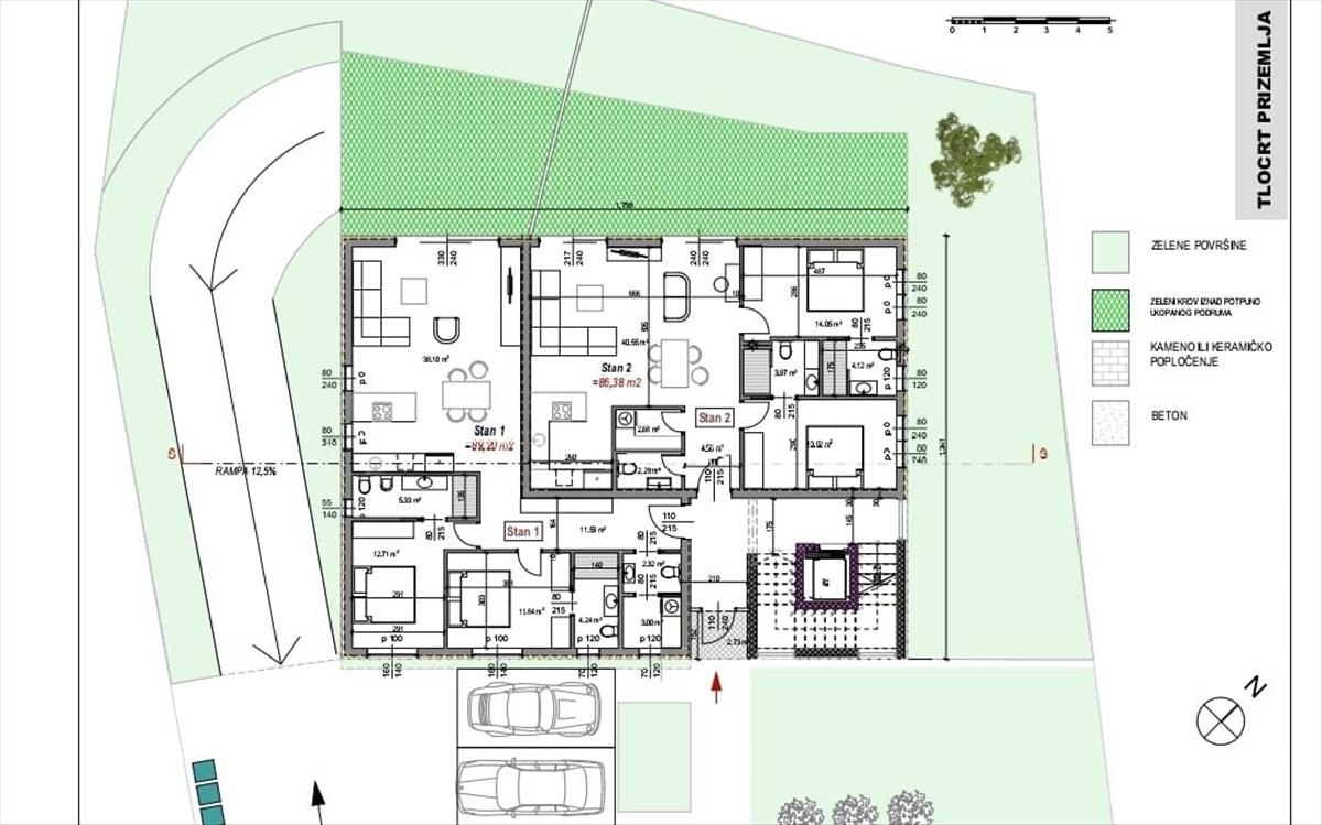 Ez a konkrét lakás Rovinjban eladó 89 m2-es területtel rendelkezik, és tartalmaz egy előszobát, 2 hálószobát, mindkettő saját fürdőszobával, egy toalettet mosókonyhával, egy konyhát étkezővel és egy tágas nappalit, ahonnan a kültéri terület és a kert nagy üvegfalakon keresztül érhető el.