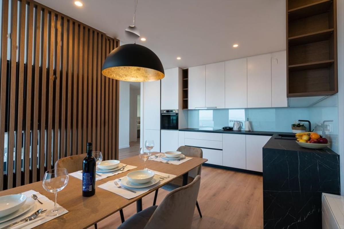 Az egyedülálló, új épületben található apartman páratlan magánéletet hoz a csodálatos 23 m2-es terasznak köszönhetően. - a béke oázisa a kikapcsolódás és az élvezet pillanataihoz. Ezen kívül az épülethez tartozik egy saját garázs, két lefoglalt parkolóhellyel és további tárolóval. a nappaliból panorámás kilátás nyílik a tengerre és a környező táj varázsára, ez a lakás az időtlenség és a kivételesség érzésével öleli körül.