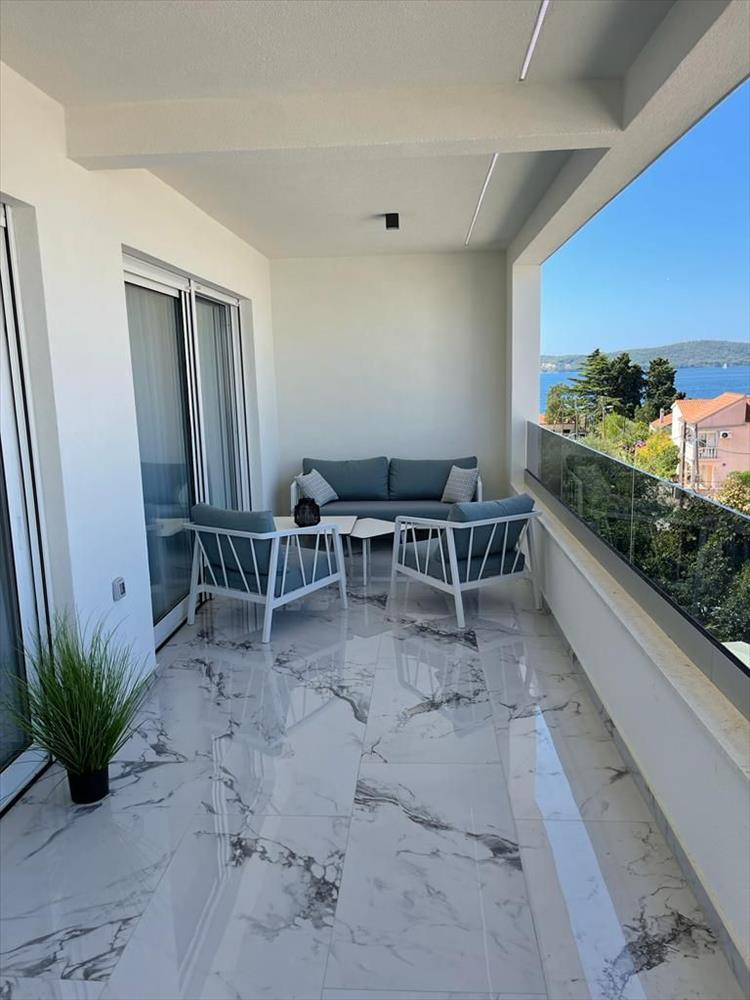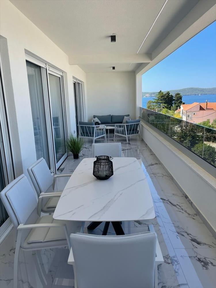Az egyik kiemelkedő jellemzője ennek a luxus horvát ingatlannak a tágas kültéri életterek. a fedett terasz mellett a lakás egy lenyűgöző, 100 m²-es saját tetőterasszal rendelkezik, ahonnan lélegzetelállító panorámás kilátás nyílik a tengerre.