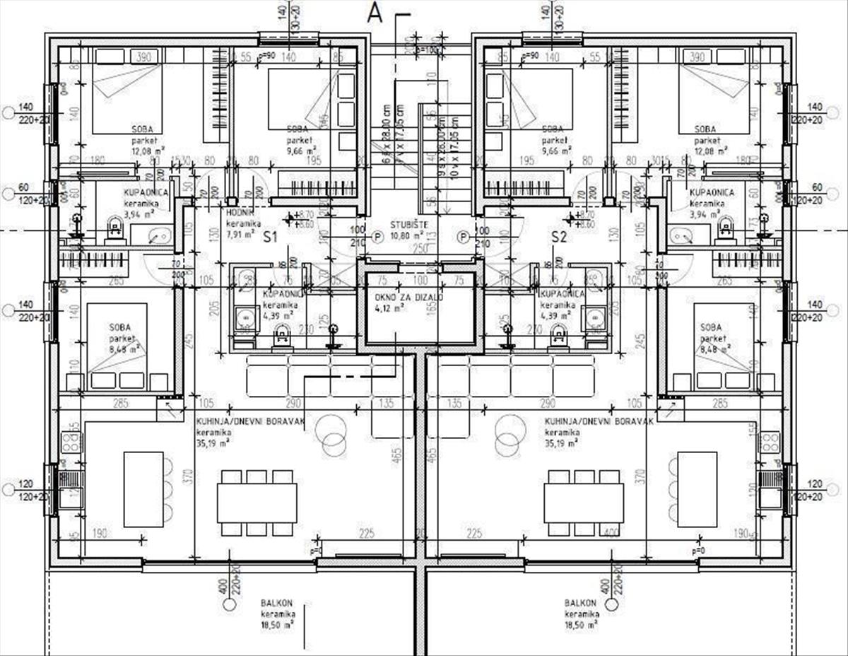 1. emelet: s5, s6; 90, 90 m2; előszoba, konyha/nappali, három hálószoba, két fürdőszoba, erkély. Ár: 250 000 €