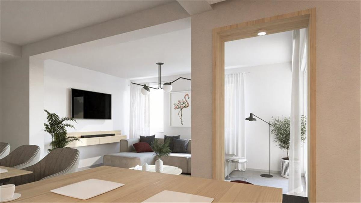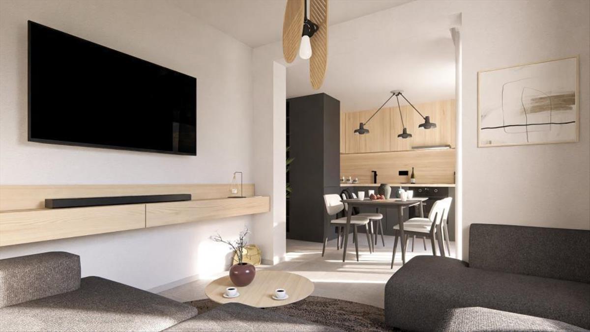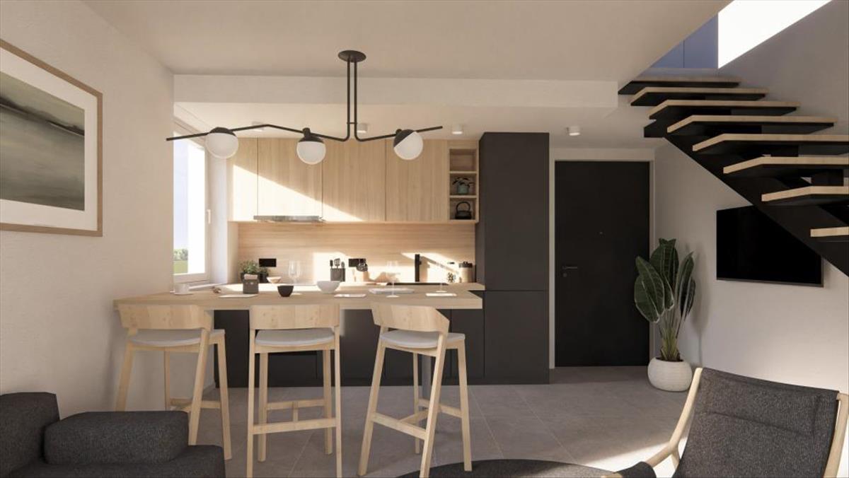 Az elegáns szerkezet első emeletén elhelyezkedő lakás nettó összterülete 101, 90 négyzetméter. Belsejében egy konyha étkezővel és nappalival, három hálószoba, egy loggia/terasz és két fürdőszoba található. a nappali zökkenőmentesen egy tágas, 15 négyzetméteres teraszig terjed. a lakás megvásárlásához hozzátartozik a két parkolóhely plusz kényelme, ami az ingatlanba ágyazott átgondolt megfontolásokat bizonyítja.