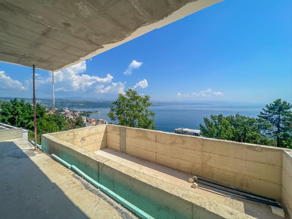 Exkluzív apartman s2 239m2 (lakó 92m2) (bruttó 425m2) medencéből 23m2, 3 gardróbból, 2 folyosóból, nappali + konyha + étkező 65m2, 3 fürdőszoba, 75m2 fedett terasz, 150m2 zöldfelület, edzőterem, pázsit. Wc. a teraszról és általában az apartman minden sarkából panorámás kilátás nyílik a tengerre és Abbázia központjára.