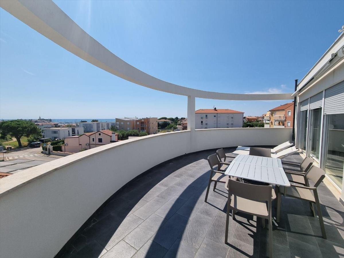A csodálatos teraszról lenyűgöző kilátás nyílik az Adriai-tenger végtelen kékjére és Novigrad festői városára.