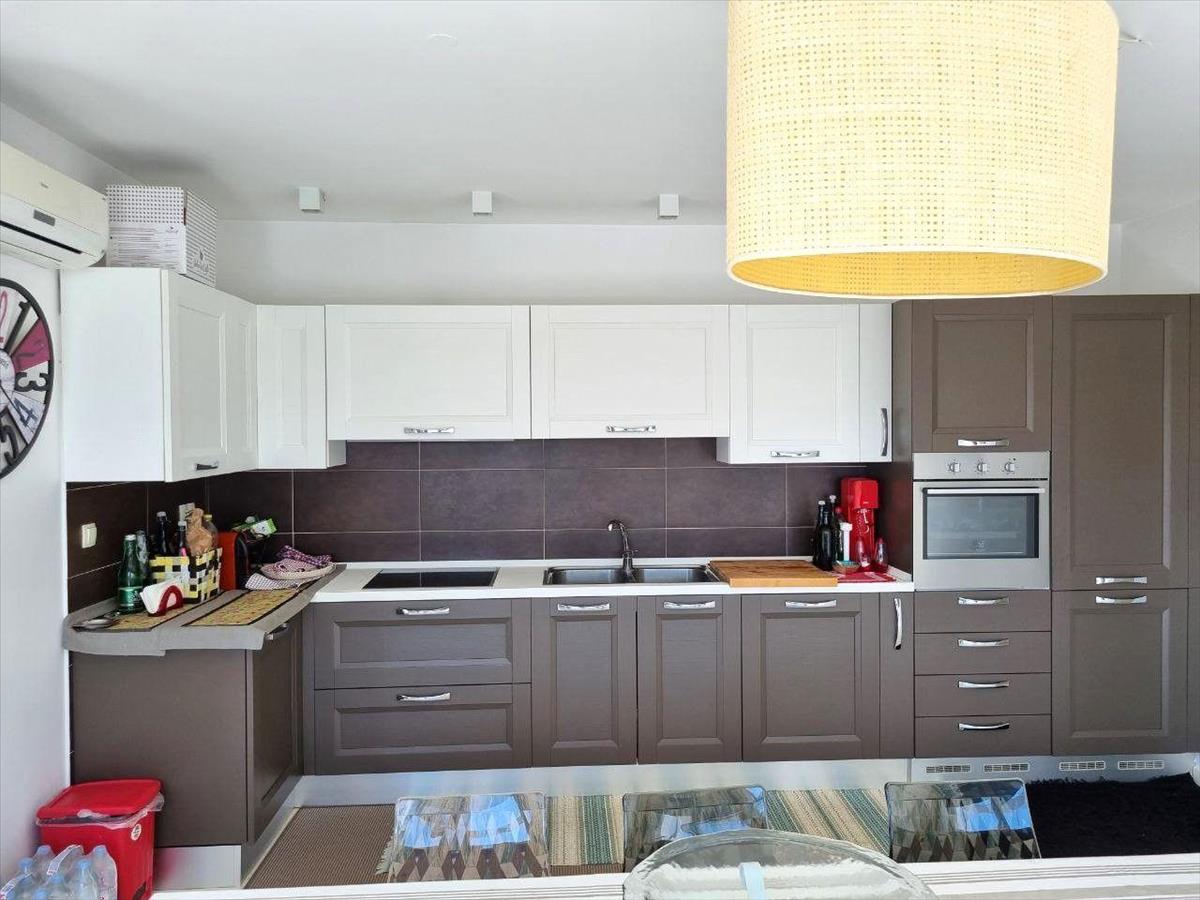 A terasszal együtt 118, 16 m² alapterületű apartman kényelmes és tágas életteret kínál, természetes fénnyel és gondosan kiválasztott részletekkel.