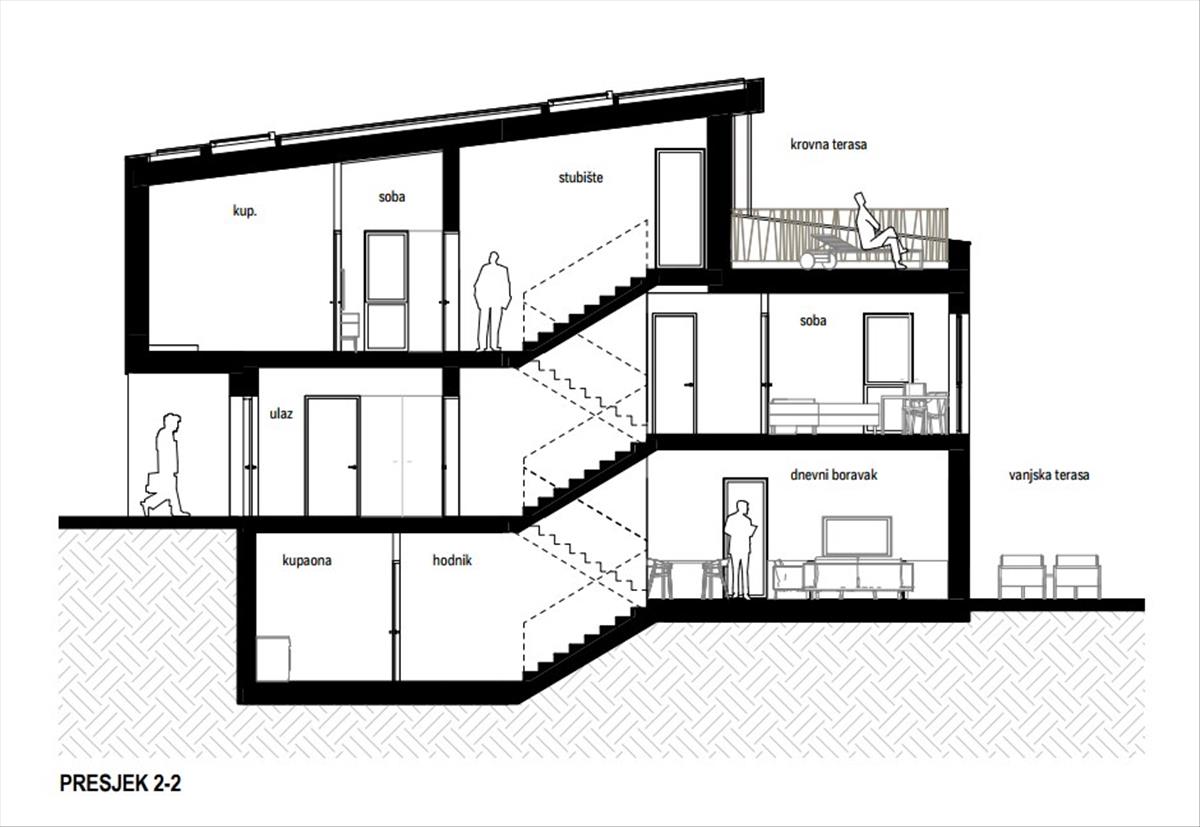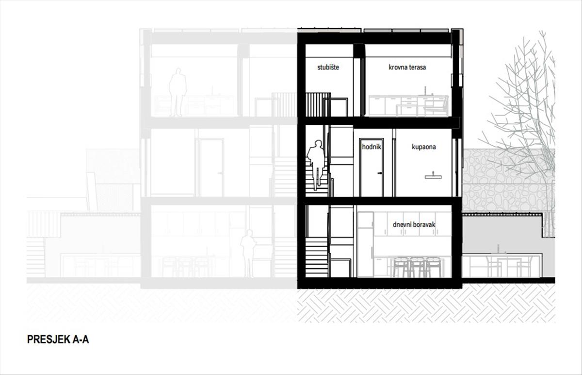 Az elrendezés alagsorból, földszintből, első emeletből és tetőteraszból áll. Az alagsorban mosókonyha, wc, gépház kapott helyet. a földszinten található egy nappali nyitott konyhával és étkezővel. Az első emeleten 3-4 hálószoba és 2 fürdőszoba található, míg a gyönyörű tetőterasz tökéletes az egész éves szabadtéri élethez, így élvezheti a napsütést és a tengerre néző kilátást.