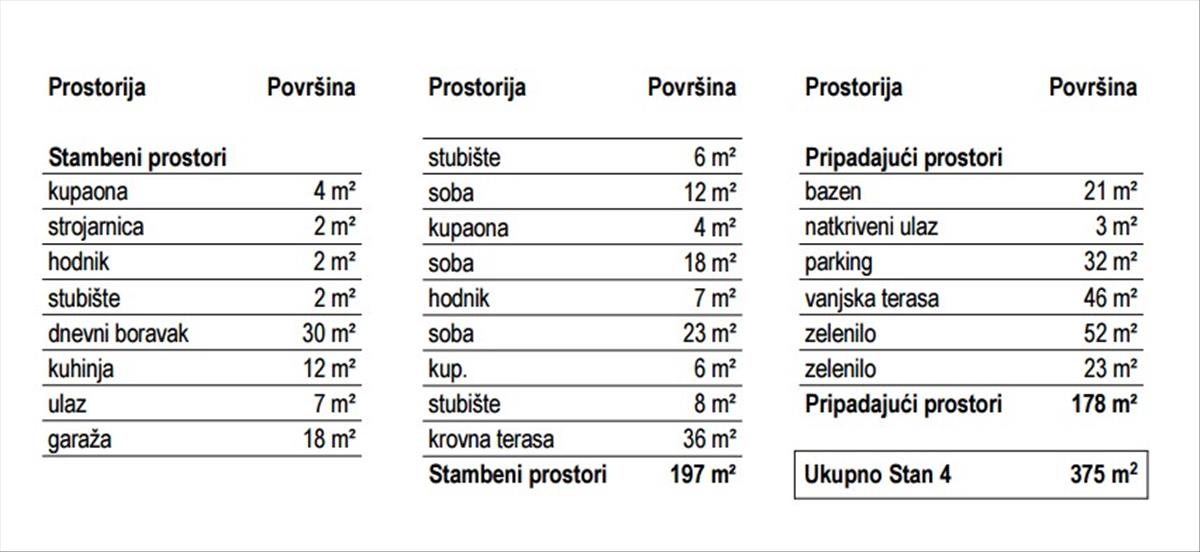 A 197 nm-es lakás Tartalmaz egy garázst, egy tengerre néző tetőteraszt, egy szabadtéri teraszt úszómedencével és két szabadtéri parkolóhelyet. Rugalmasságot kínál a hozzáigazításhoz, lehetővé téve három vagy négy szoba építését. a tetőre fotovoltaikus erőműveket telepítenek, így a ház energiafüggetlen. a lakásban beépített padlófűtés, fan coil hűtés és hőszivattyú található. Ezenkívül lehetőség van a lakás befejező anyagainak kiválasztására.
