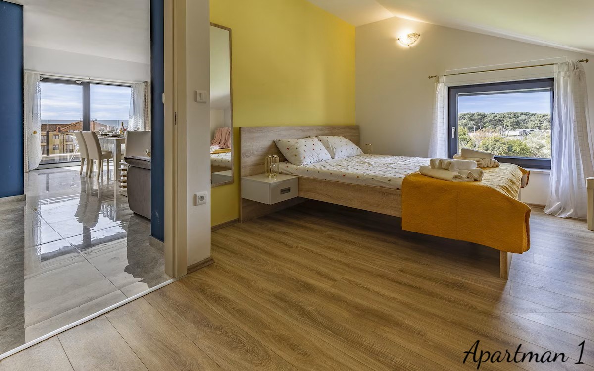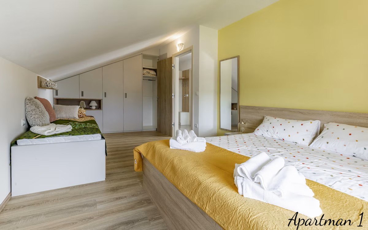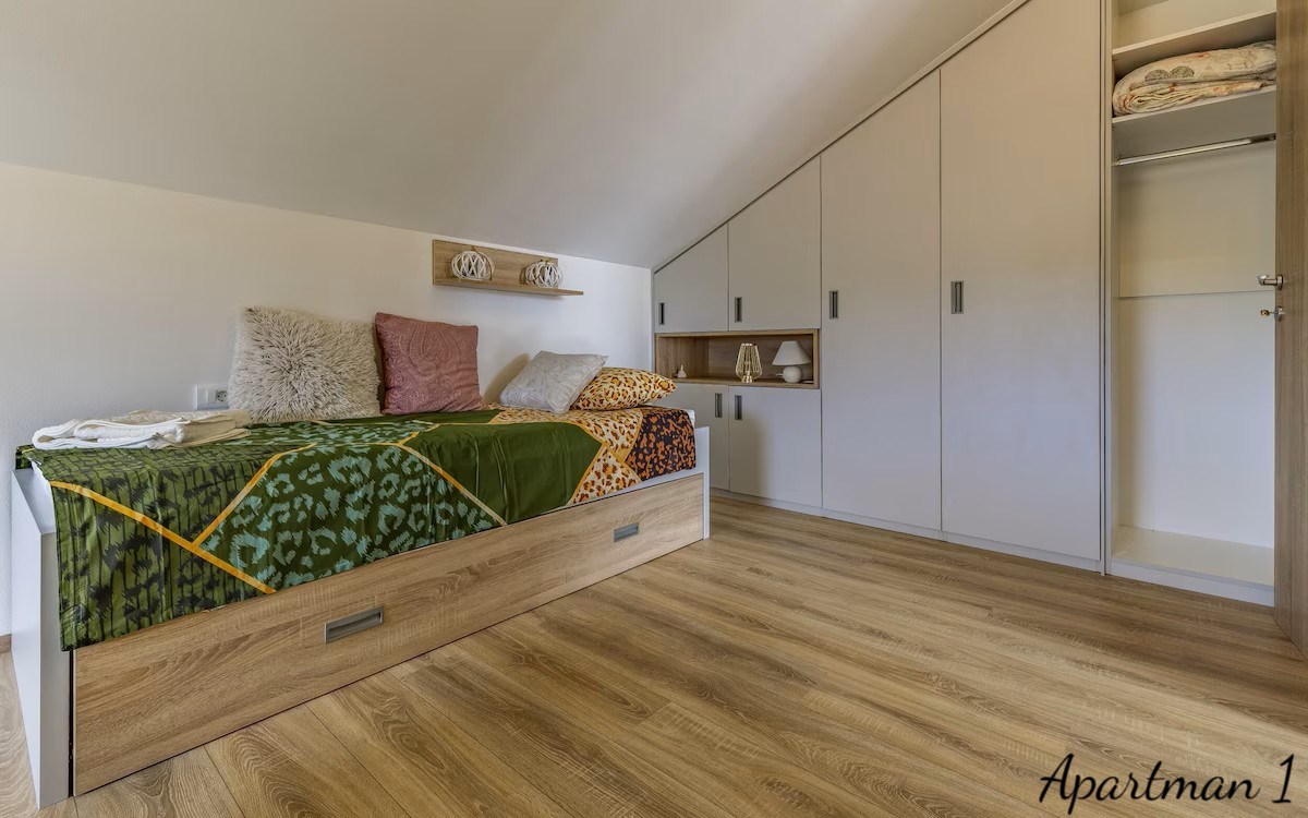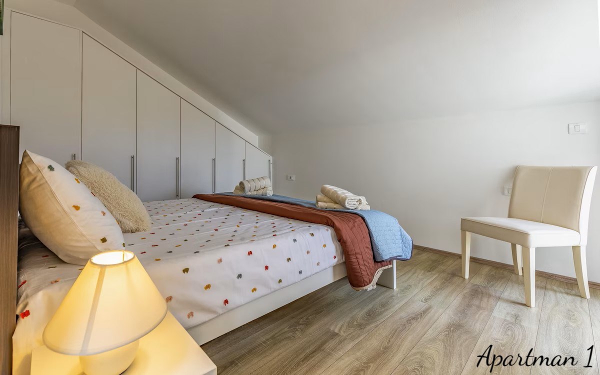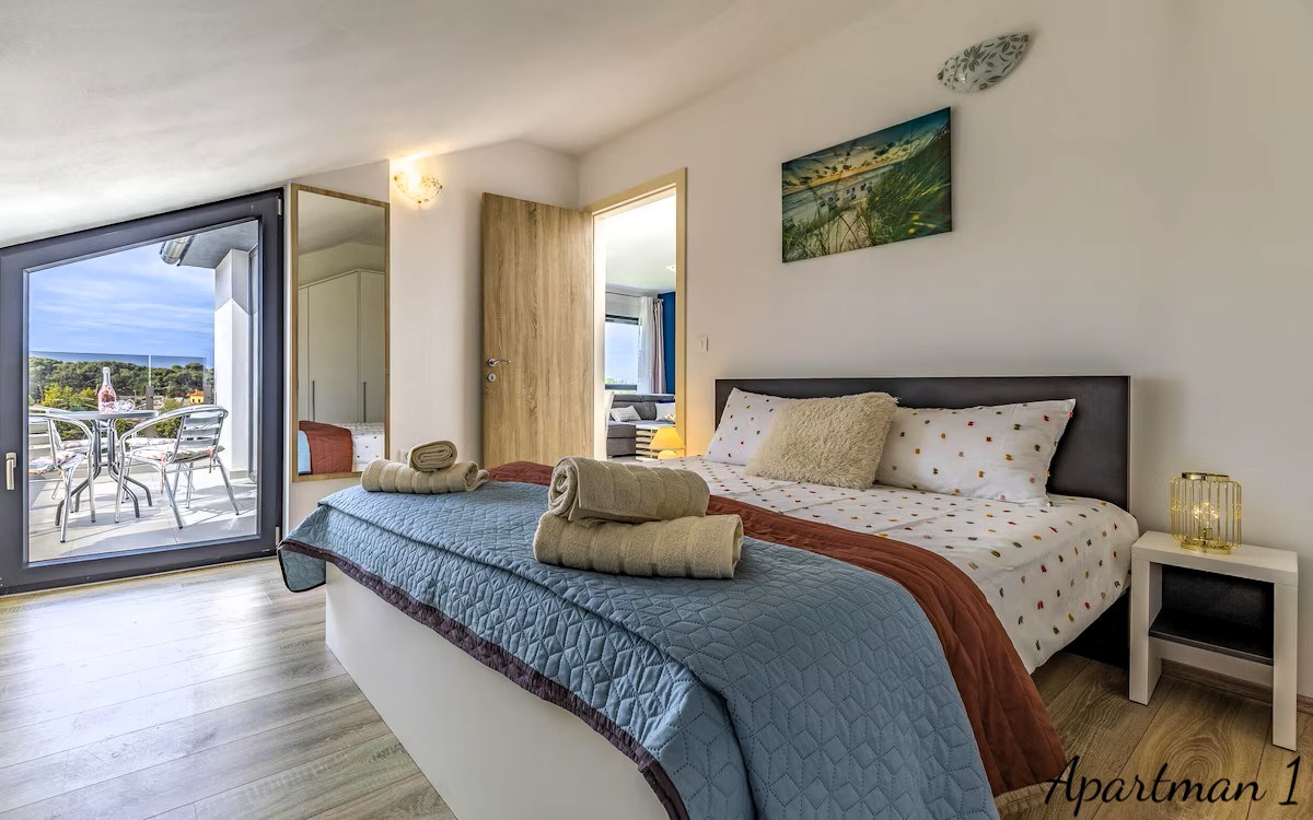 Medulinban, Dél-Istria egyik legkeresettebb tengerparti helyszínén található ez az exkluzív ingatlan lehetőség, amely három luxus tengerre néző apartmant kínál, a tengertől második sorban, mindössze 100 méterre a híres homokos strandoktól és a tiszta adriai partvonalról. Az ingatlanok egy modern lakóépületben helyezkednek el, amely 2023-ban készült el, és rendkívül ritka ajánlatot képviselnek a piacon, mivel mindhárom lakóegység egyetlen tulajdonos birtokában van, és vertikálisan helyezkednek el ugyanabban az épületben, egyedi lehetőséget teremtve a magánhasználatra, egy luxus családi komplexumra vagy egy magas hozamú turistai bérbeadási befektetésre. Az apartmanok összesen körülbelül 178, 92 négyzetméter lakóterületet biztosítanak, és összesen nyolc hálószobával rendelkeznek. Minden egység nyitott kilátással bír a tengerre, a festői Vižula-félszigetre és a festői Medulini kikötőre, kis hajókkal, hozzájárulva egy autentikus mediterrán életérzéshez, amelyet a természetes fény, a nyitott kilátások és a tengerparti környezet határoz meg. Az első apartman egy elegáns, két hálószobás lakás, amelyet a modern nyitott tér koncepciója szerint terveztek. Egy bejárati folyosó, amely kijelölt gardróbhellyel rendelkezik, egy világos nappali zónába vezet, amely harmonikusan ötvözi a kényelmes pihenőteret, a teljesen felszerelt modern konyhát és az étkező teret. a nagy üvegfelületek bőséges természetes fényt biztosítanak, és közvetlen hozzáférést nyújtanak egy teraszra, ahonnan a környező szomszédságra és a tengerre nyílik kilátás, ideális helyszínt teremtve a pihenéshez vagy társasági összejövetelekhez. Ez az apartman vendég WC-t, egy kisebb tárolót, két hálószobát és egy tágas fürdőszobát is tartalmaz. a második apartman egy nagyobb, családbarát lakóegység három hálószobával, hasonlóan szervezve, egy bejárati előtérrel, amely egy tágas, nyitott nappali területre vezet, ahol a modern konyha, az étkező és a tágas nappali zökkenőmentesen kapcsolódik egymáshoz. Ebből a központi zónából hozzáférés nyílik egy nagyobb teraszra, amely alkalmas kültéri étkezésre és pihenésre, miközben élvezheti a Medulin tájára és partjára nyíló panorámás kilátást. a három hálószoba mellett az apartman vendég fürdőszobát és egy nagy családi fürdőszobát is kínál. Ennek az egységnek, akárcsak az első apartmannak, különösen értékes jellemzője, hogy szinte minden szoba lenyűgöző tengerre néző kilátással és vizuális kapcsolattal bír a környező tengerparti tájjal. a harmadik és legexkluzívabb lakóegység egy luxus duplex apartman, amely saját tetőterasszal rendelkezik. a bejárat egy tágas, nyitott nappali területre nyílik, amely egy nagy nappaliból, teljesen felszerelt konyhából és étkező zónából áll, amit számos üvegfal keretez, amelyek lenyűgöző kilátást nyújtanak a tengerre és a természetes környezetre. Ez a szint egy tengerre néző hálószobát és egy vendég fürdőszobát is tartalmaz. Egy belső lépcső vezet a felső szintre, ahol két további hálószoba és egy tágas fürdőszoba található. Erről a szintről közvetlen hozzáférés nyílik a privát tetőteraszra, amely Medulin egyik legvonzóbb panorámás kilátópontját kínálja, akár 280 fokos kilátással az adriai partvonalra, ideálissá téve jacuzzi zóna, pihenőterület, privát bár vagy napozóterasz kialakítására. Minden apartman teljesen bútorozottan kerül értékesítésre, és kiváló tájolással rendelkezik, amely biztosítja a bőséges természetes fényt a nap folyamán. a kényelmet minden szobában telepített légkondicionáló és a hálószobák kivételével minden területen padlófűtés biztosítja. Az épület minőségi pvc nyílászárókkal, szúnyoghálókkal és redőnyökkel rendelkezik, valamint egy 10 centiméteres homlokzati szigetelési rendszerrel, amely hozzájárul az energiahatékonysághoz. Az ár tartalmazza a két privát parkolóhelyet, lehetőséggel egy további parkolóhely éves bérlésére. a tulajdonjog dokumentációja teljesen rendben van, érvényes használati engedéllyel, terhek nélkül, és lehetőség van a tulajdon megvásárlására banki finanszírozás révén. a helyszín valódi tengerparti életstílust kínál, tengerparti sétányokkal, kerékpáros útvonalakkal, éttermekkel, kávézókkal, kikötői létesítményekkel és számos szabadidős attrakcióval, mind közvetlen közelben. Az alapvető napi szükségletek, mint iskola, óvoda és egészségügyi szolgáltatások, mindössze néhány perces autóútra elérhetők. Kivételes közelsége a tengerhez, panorámás kilátások, modern építés és rugalmas, több egységből álló elrendezés miatt ez az egyedi ingatlan ritka lehetőséget képvisel a vásárlók számára, akik a luxus élet, a magánélet és a biztos megtérülés kombinációját keresik prémium turistai bérbeadás révén az istriai parton. Ref: RE-U-46130