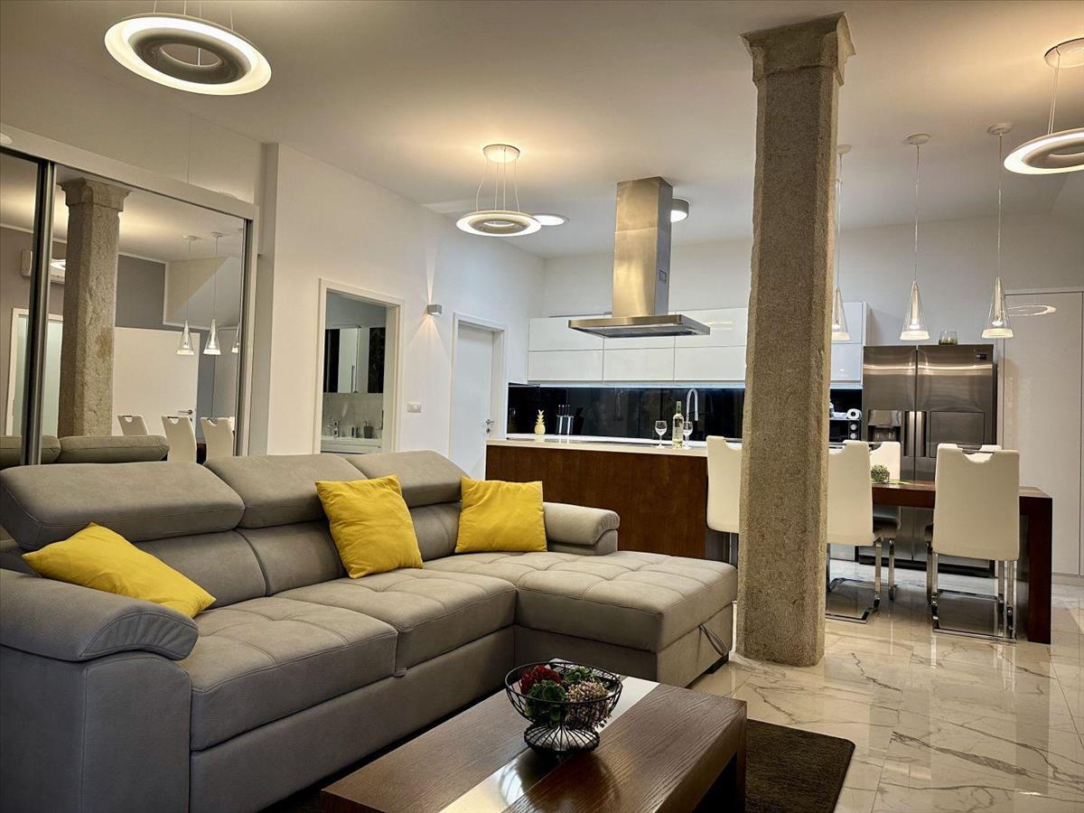 Ez a gyönyörű apartman a történelmi báj és a modern luxus keverékét kínálja. Az apartman tartalma: Lépcső - 6, 10 m2 Előcsarnok - 5, 30 m2 Szekrény - 4, 20 m2 Fürdőszobák 1 - 4, 40 m2 1. Hálószoba - 17, 58 m2 Nappali konyhával és étkezővel - 44, 50 m2 2 fürdőszoba - 14 m2 Hálószobák 2 - 10, 75 m2 Az apartmanhoz tágas terasz is tartozik nyári konyhával. Ez a különleges ingatlan mindössze 100 m-re található a tengertől, és csak néhány lépésre számos egyéb érdekes létesítménytől. Ref: RE-U-30875