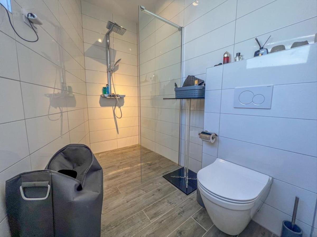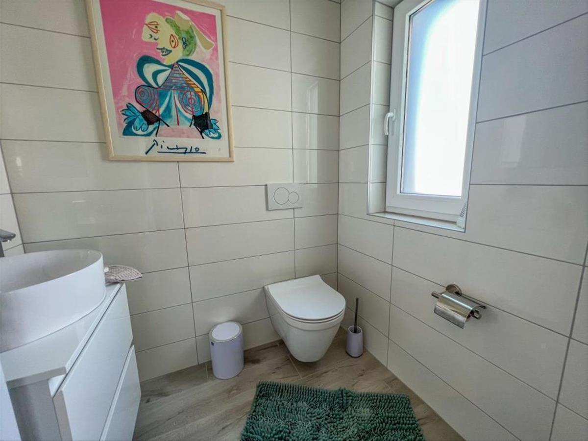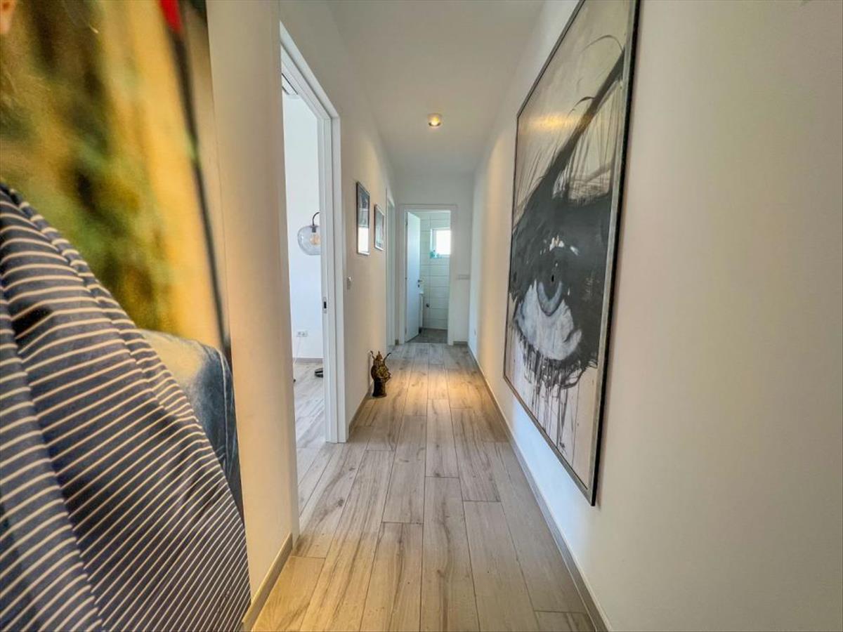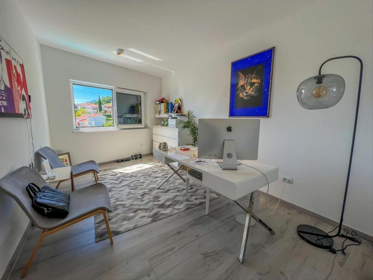 Ez az ingatlan egy újabb fejlesztés része, csendes és mellékutcában található, távol a zajtól és az aktív forgalomtól, tökéletes egyensúlyt biztosítva a magánélet és az összes kényelmi közelség között. Ennek a luxuslakásnak minden részlete a gondos tervezésről és a minőségi kivitelezésről árulkodik. Ezen az emeleten 3 nagy hálószoba, két fürdőszoba, 1 wc, előszoba és egyterű nappali konyhával, étkező, valamint a tengerre panorámás teraszra nyíló kijárat található. Különös hangsúlyt fektetnek a teraszra, amely eláll a lélegzete hihetetlen tengeri kilátásával. Tökéletes hely a kikapcsolódásra és a naplementére, vagy a családdal és a barátokkal való eltöltött időre.
