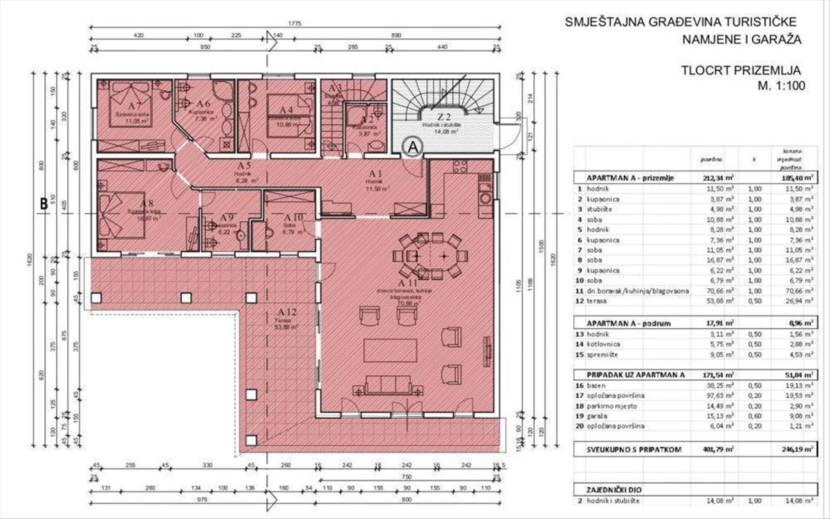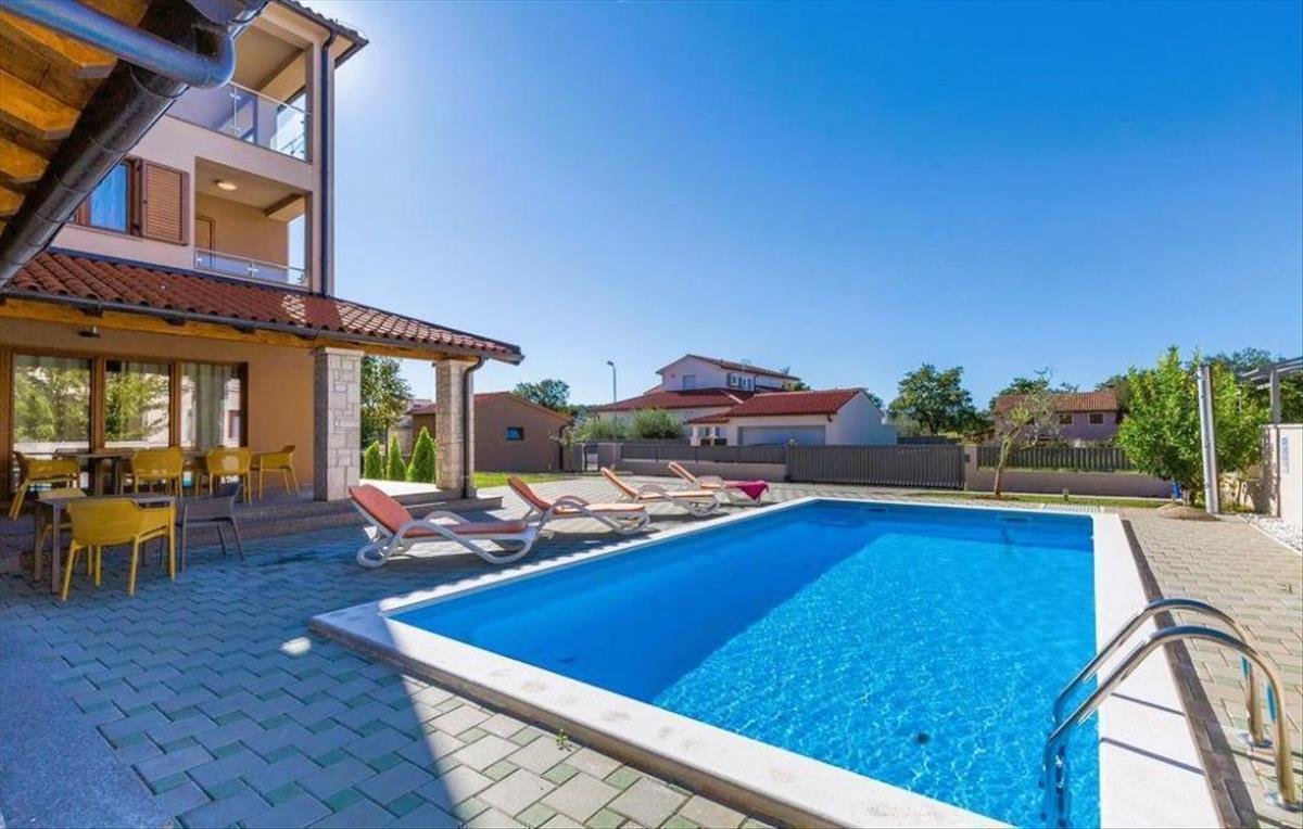 A lakáshoz tartozik egy kocsibeálló (2, 90 m2), egy garázs (9, 08 m2) és a pincében egy tároló (4, 53 m2), ami praktikusságot biztosít és megkönnyíti mindennapjait. További információ: - saját medence (5x8) - saját kazánház az alagsorban - a környezet automatikus öntözése - hőszivattyús padlófűtés - fan coilok fűtéshez és hűtéshez Ennek a lakásnak az elhelyezkedése egyszerűen ideális. Pula városa mindössze 5 km-re található. Ne hagyja ki ezt az egyedülálló lehetőséget! Ref: RE-U-21974
