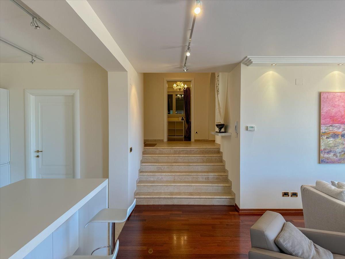 Az étkező magasfényű bútoraival tűnik ki világos és szellős térben. Az érintetlen fehér tónusokkal díszített konyha teljesen felszerelt, és egy kamrával is rendelkezik. a lakást muránói csillárok díszítik, a padlót pedig jellegzetes Merbau fa parkettából készítik, ami egyedi karaktert ad. Az egész tér velencei stílust áraszt, amelyet elegáns és biztonságos betörésgátló bejárati ajtó egészít ki.