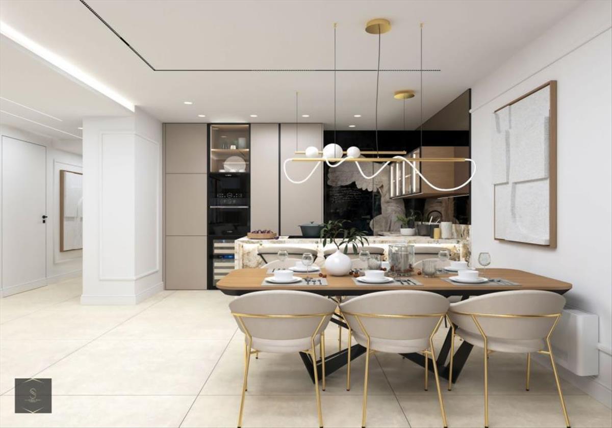 A lakás nettó lakóterülete 137m2, elrendezése a következő: a lakás egy előszoba, egy fürdőszoba és egy tároló helyiségből, egy nagy, nyitott terű nappaliból konyhával és étkezővel (45m2), 3 hálószoba, amelyek közül az egyikben fürdőszoba is található.