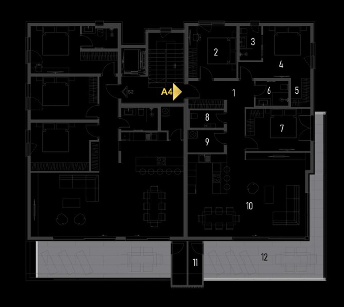 Az egyedülálló új épület első emeletén található A3-as apartman bruttó 173, 01 m2 alapterületű.