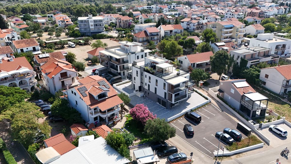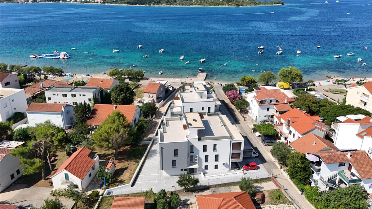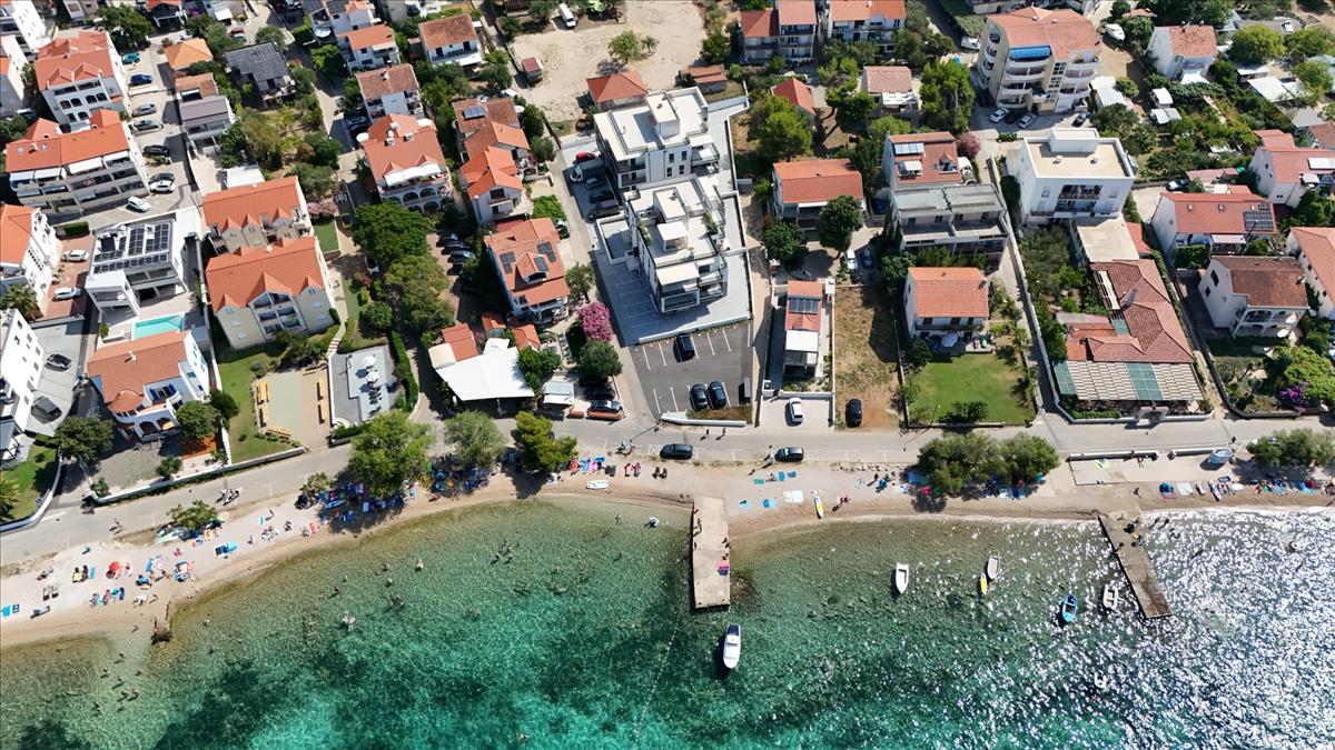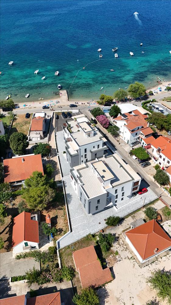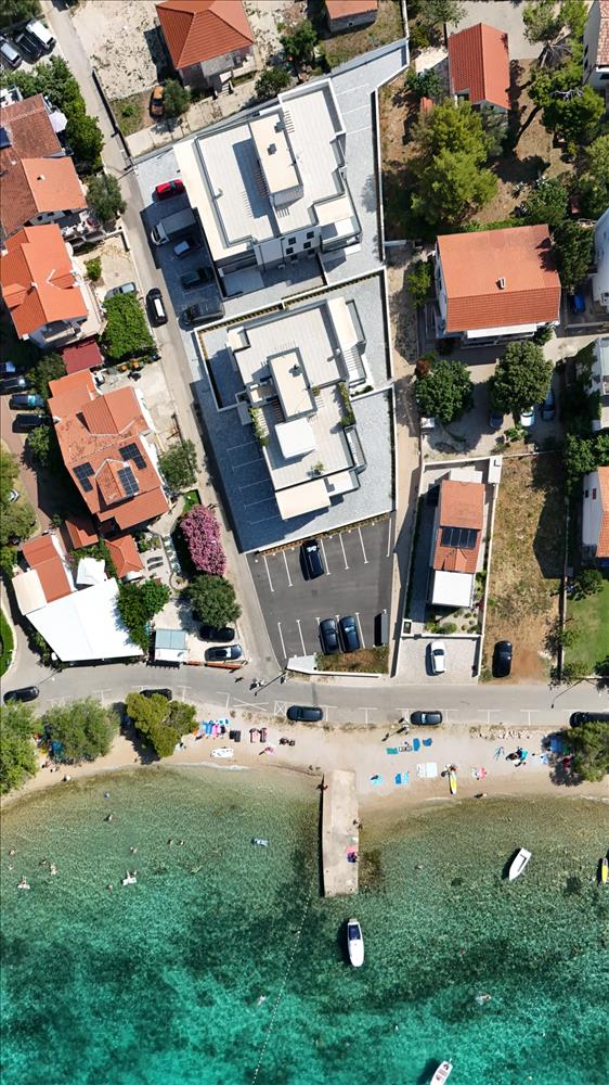Új, modern projekt luxus apartmanokkal, az első sorban a tenger felé, közvetlenül a tengerparton, Vodice külvárosában, cca 2, 5 km-re Vodice központjától és 10 km-re Sibenik városközpontjától.