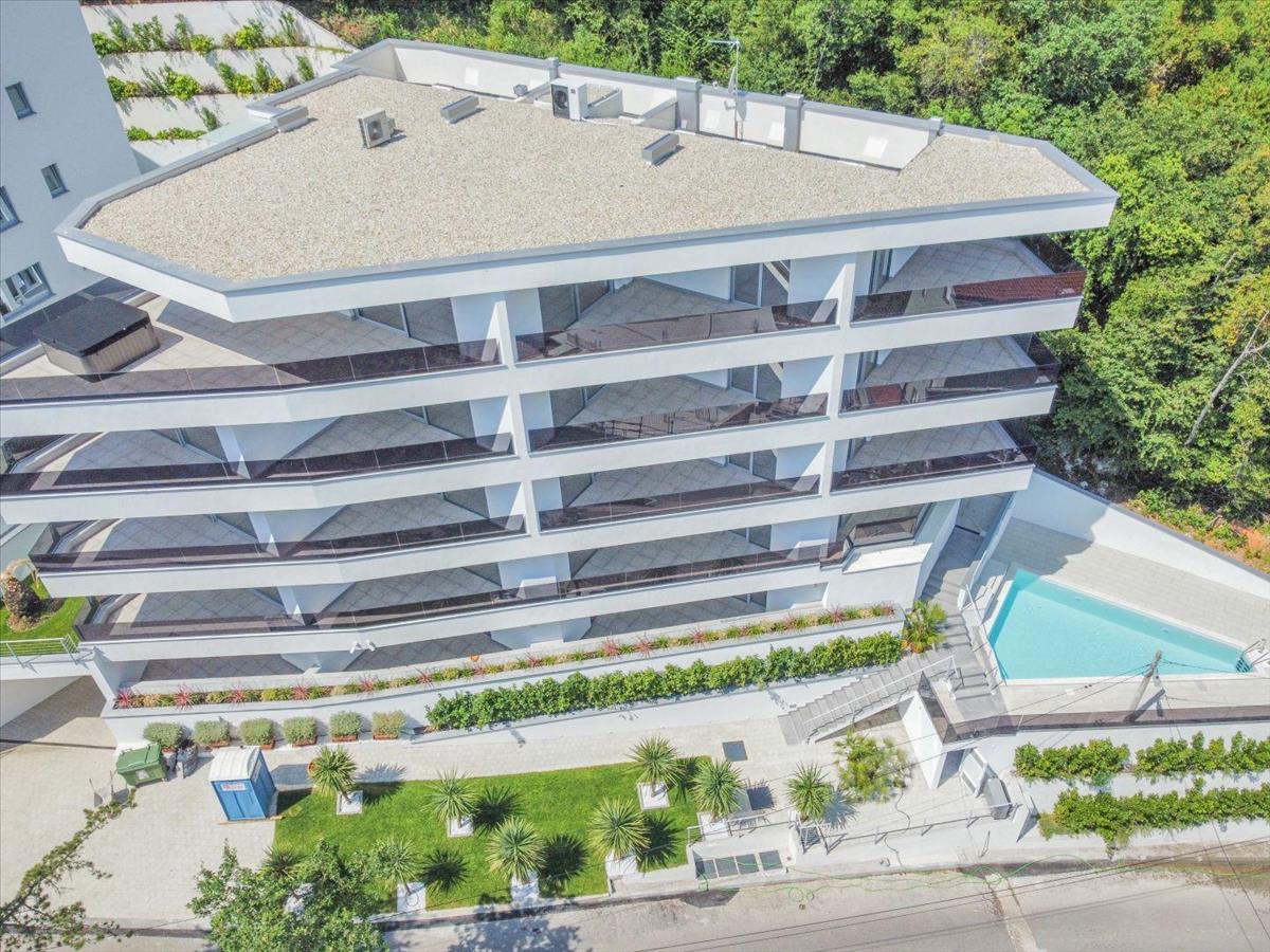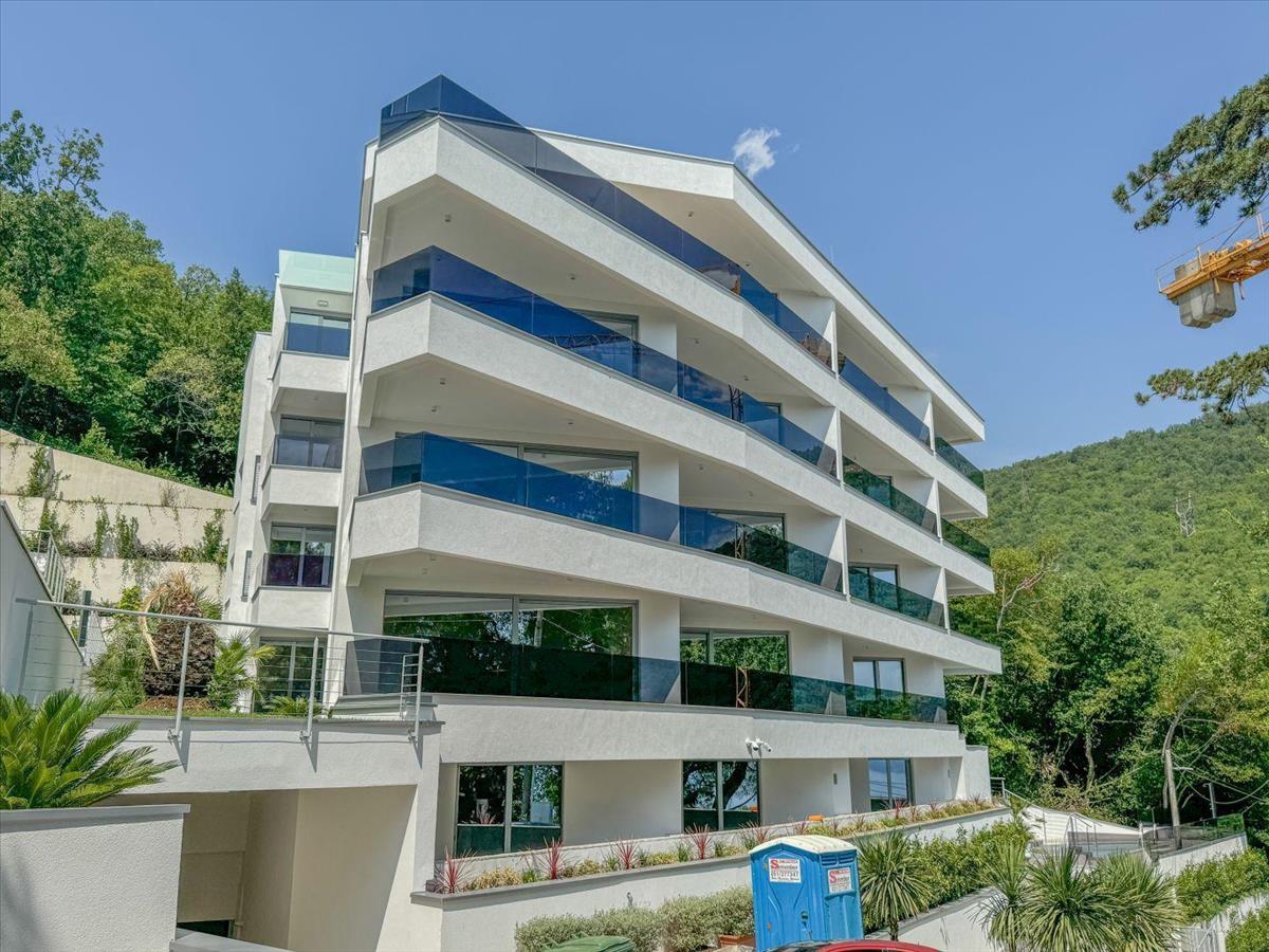 Csodálatos apartman egy új épületben, kilátással a tengerre Abbáziában!Örömmel kínálunk eladásra egy 110, 54 m² alapterületű, lenyűgöző modern lakást (p7), amely Opatija központja felett található, panorámás kilátással a tengerre. Ez az exkluzív ingatlan erkéllyel, úszómedencével, lifttel és két parkolóhellyel rendelkezik. Déli tájolása gyönyörű kilátást és bőséges természetes fényt biztosít egész évben, köszönhetően a csúszó üvegfalaknak.