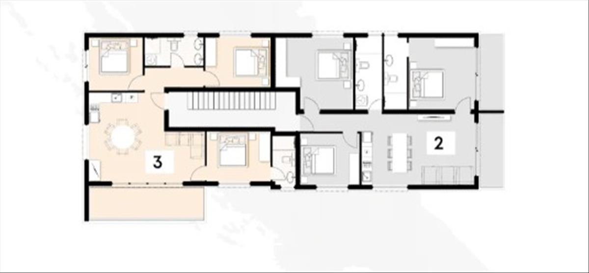A komplexum egy földszintből és két emeletből áll, összesen hat modern tervezésű lakással. Minden egység gondosan megtervezett, hogy maximális kényelmet, modern esztétikát és funkcionalitást biztosítson.