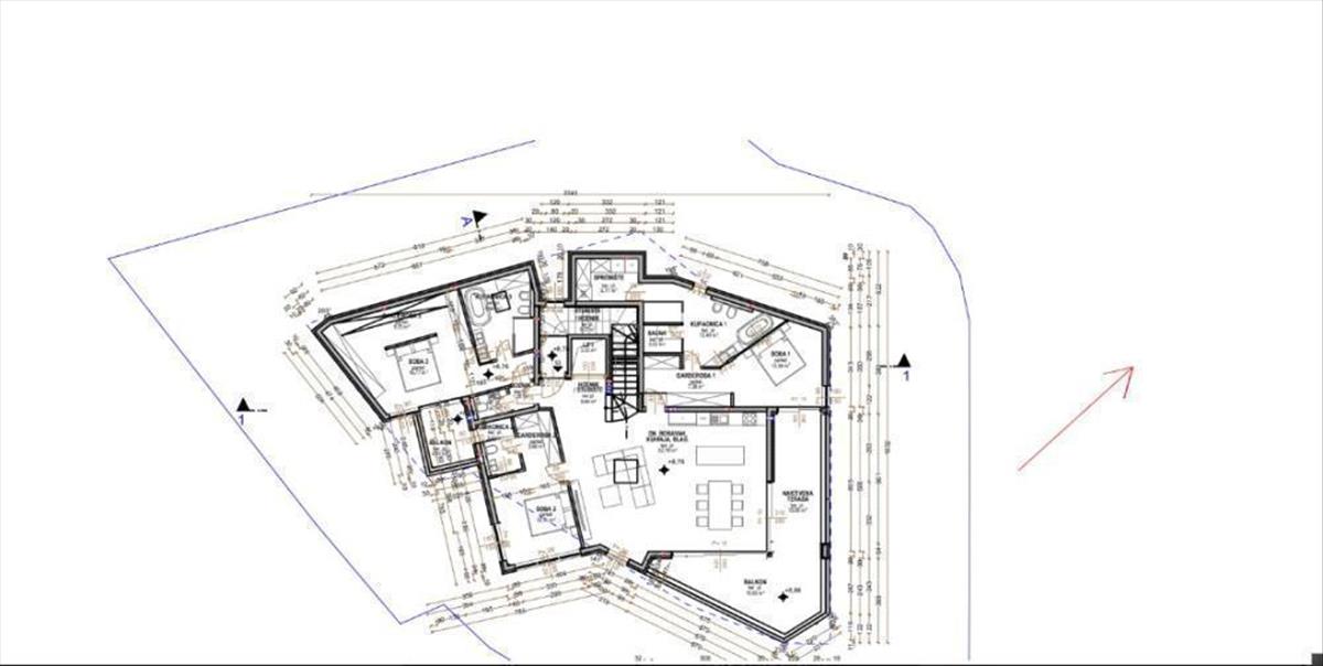 Három fő hálószoba fürdőszobával és öltözővel, tároló, tágas szalon nappalival és konyhával, fedett terasz és erkély.