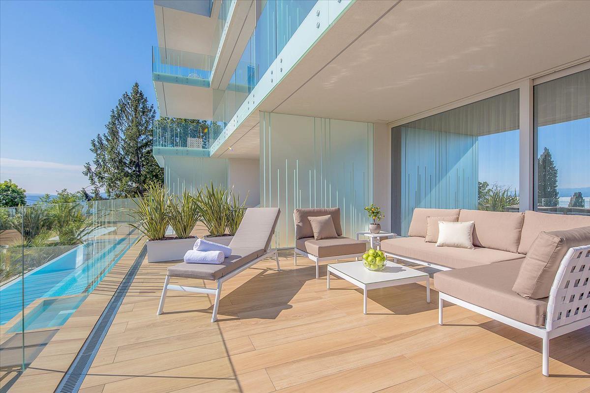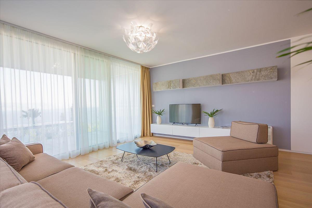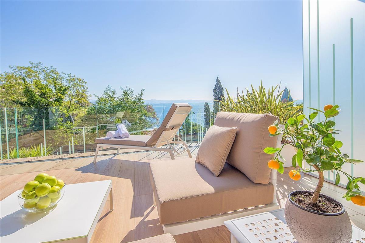 Eladó egy fényűzően berendezett lakás Opatija szívében, az Adriai-tenger partjának gyöngyszemében, mindössze 150 méterre a tengertől, egy úszómedencés komplexumban.