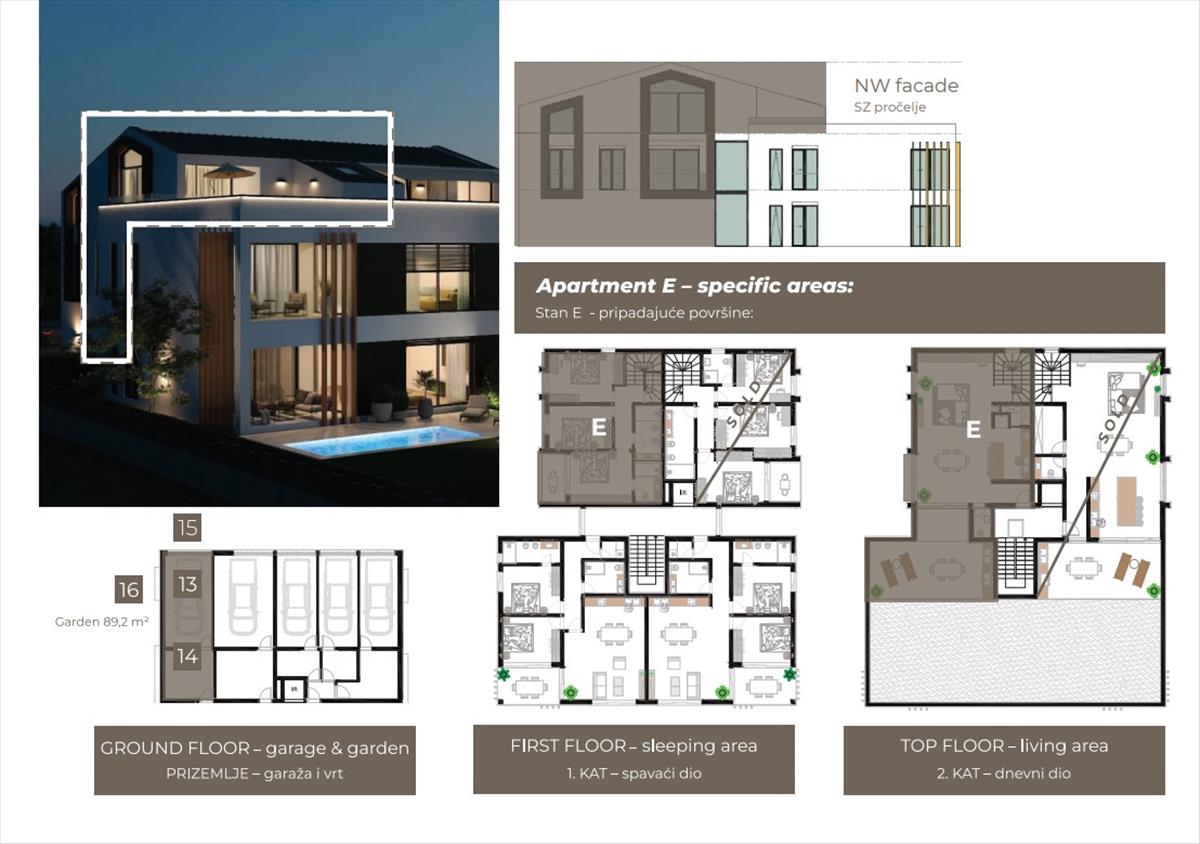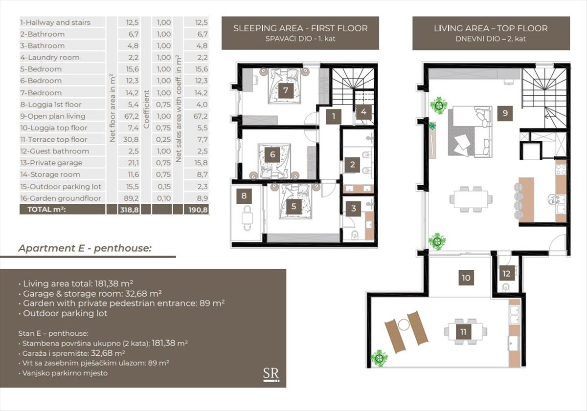 A luxus élet végső élménye - az E lakás két szinten terül el, amelyeket belső lépcső köt össze, és új értelmet ad az elegancia és kényelem összefonódó életstílusának.