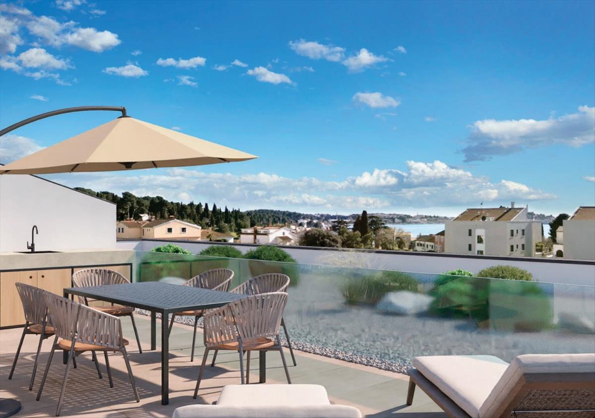 215 M²-es penthouse a tenger közelében, kilátással Rovinjban, 300 méterre a tengertől!