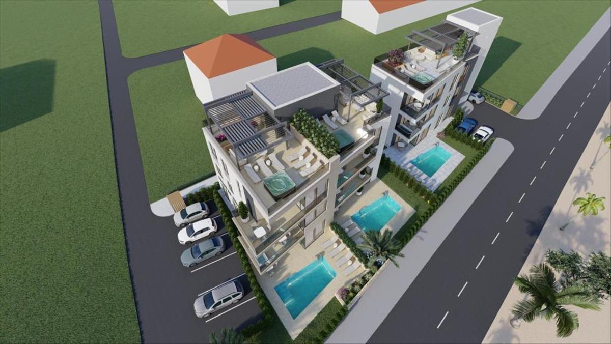 Eladó egy fényűző, építés alatt álló CS05-ös penthouse, amely exkluzív helyen, a Zadar melletti Sukošanban, a tengertől első sorban található.A felső kategóriás rezidencia egy kisebb, hat lakásos lakóépületben található egy új építésű luxuskomplexumban.
