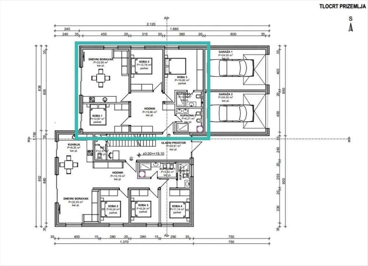 Az apartmanhoz tartozik garázs, három hálószoba, két fürdőszoba, szalon konyhával, terasz.