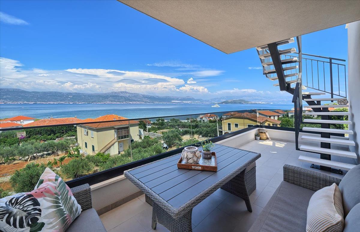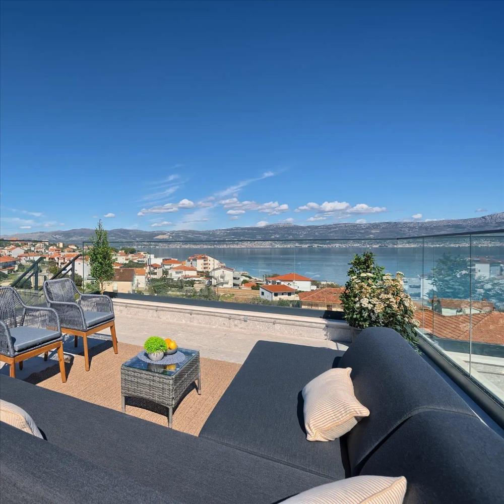 Engedjék meg, hogy bemutassunk egy modern penthouse-t, amely páratlan helyen, mindössze 100 méterre az érintetlen strandtól és az azúrkék tengertől a varázslatos Čiovo szigeten található.Ez a rezidencia ideális menedéket kínál azoknak, akik tökéletes lakhelyet keresnek, vagy jövedelmező befektetést keresnek az idegenforgalmi szektorban.