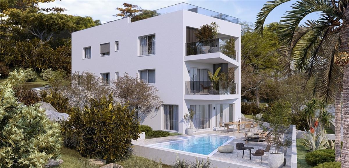 Fedezze fel ezt a lenyűgöző luxus lakást privát úszómedencével, amely egy exkluzív tengerparti épületben található, mindössze négy lakással. Egy idilli öbölben elhelyezkedve, ez a tengerparti menedék közvetlen hozzáférést kínál a parthoz, miközben csak 500 méterre található boltoktól, éttermektől és kávézóktól. a történelmi Trogir város csupán 4 km-re van, és a Split Nemzetközi Repülőtér egy rövid 10 km-es autóútra található.