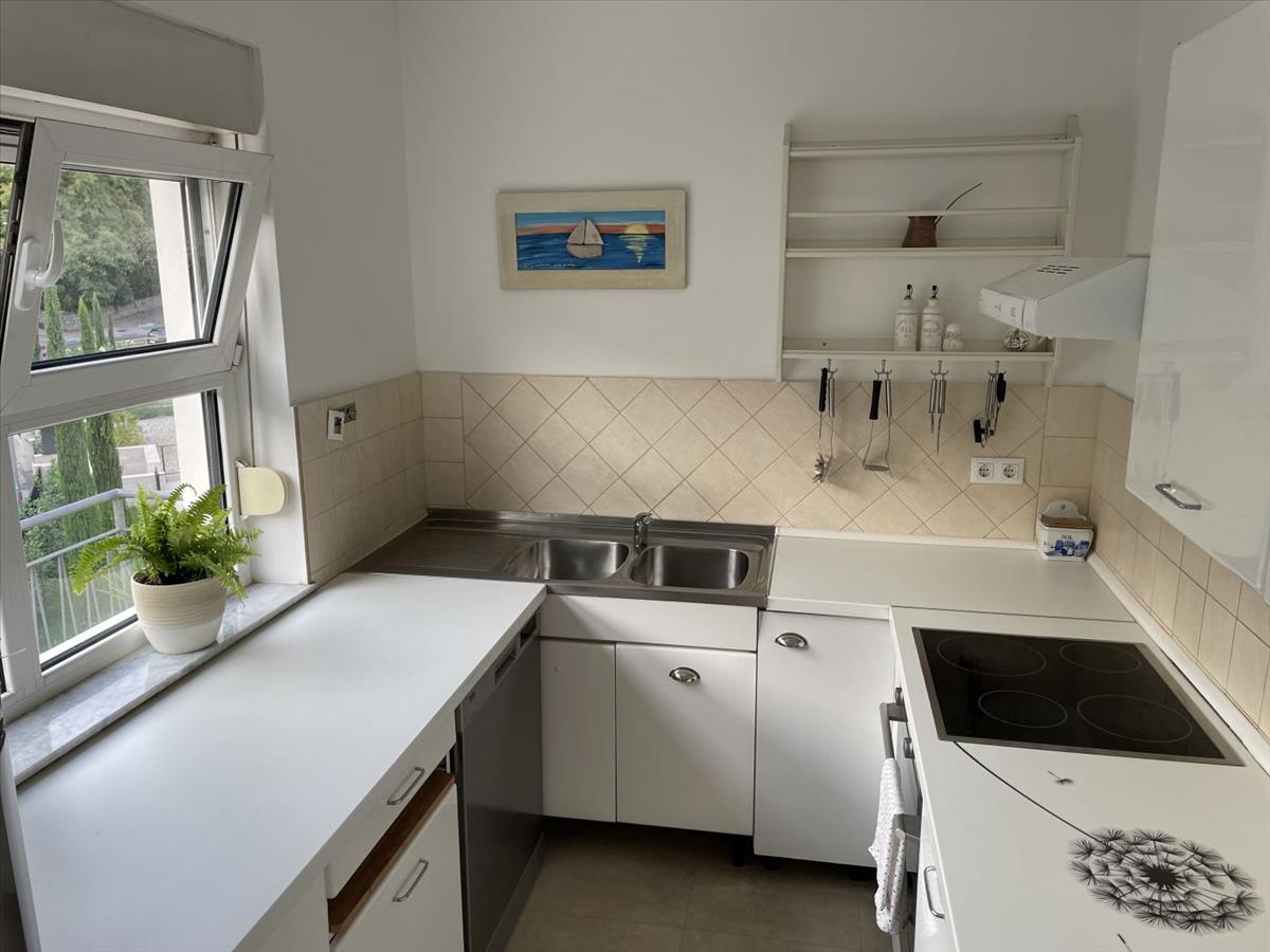 Főbb jellemzők: Lakóterület: 200 m² Három hálószoba és két fürdőszoba Három napos erkély tengerre néző kilátással Tágas, 60 m²-es déli fekvésű terasz Magas mennyezet a szellős, világos légkörért Külön konyha és étkező Beépített szekrények extra tárolásra Klíma és központi elektromos fűtés Saját parkoló a villa előtt