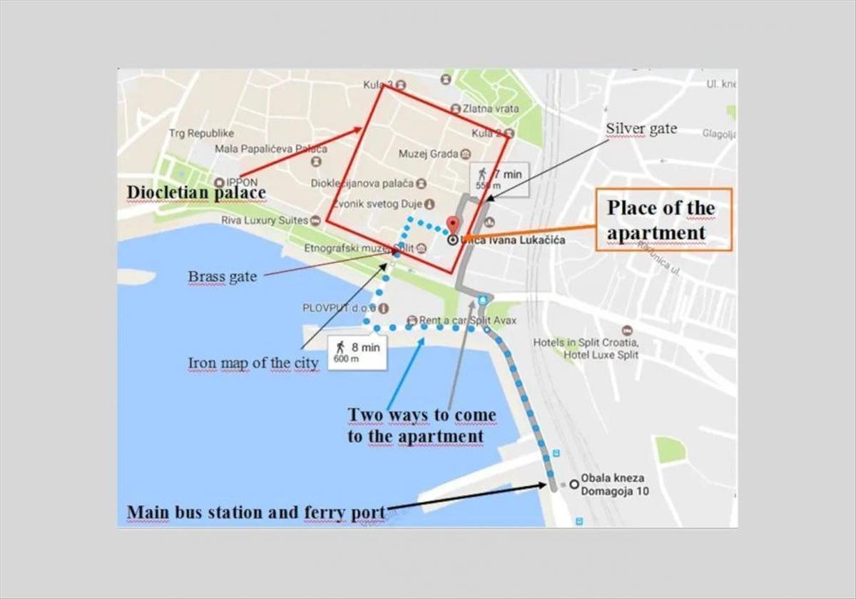 Egyedülálló helyen található a Diocletianus-palota falai között, néhány lépésre a Szent Duimus-székesegyháztól és a Peristiltől.