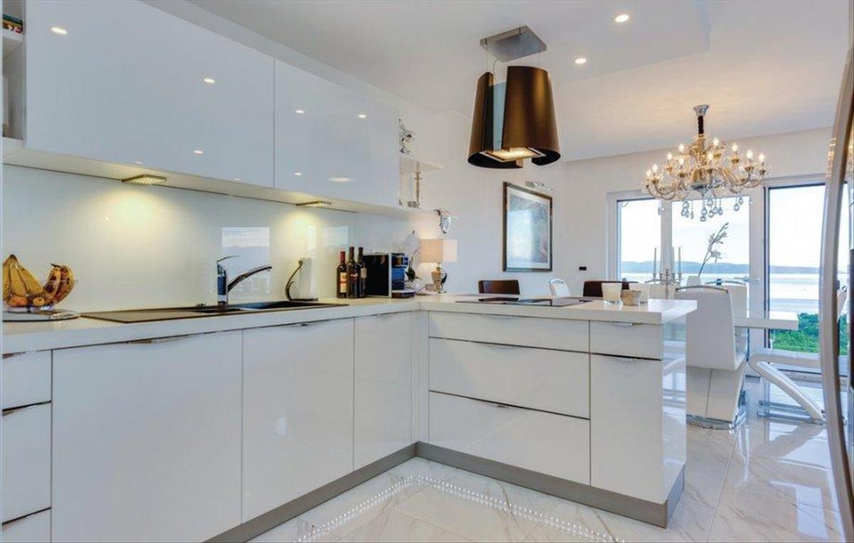 Lélegzetelállító ingatlan, valamint panorámás kilátás nyílik az egész Kvarner-öbölre, a szigetekre és a hegyekre.