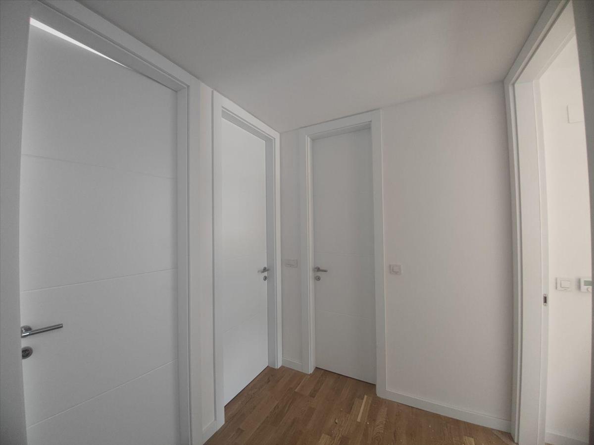 Az első emeleten található egy fürdőszoba és három hálószoba, amelyek közül az egyik saját fürdőszobával rendelkezik. Mindhárom hálószoba egy tágas, 29 m²-es erkélyre nyílik. a második emeleten található egy wc és egy nyitott terület, amely magában foglalja a konyhát, az étkezőt és a nappalit. Ez a tér egy nagy üvegfalon keresztül egy 25 m²-es, tengerre néző erkélyig terjed. Erkélyről egy külső lépcső vezet egy 55 m²-es tetőteraszra, amelyen egy 16 m²-es medence található, ahonnan lélegzetelállító kilátás nyílik a tengerre.