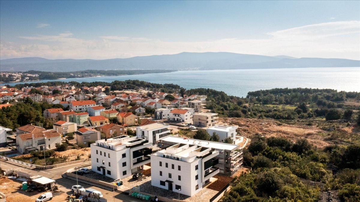 Ez a lenyűgöző, kétszintes duplex penthouse tengerre néző kilátással és úszómedencével büszkélkedhet, Krk városában, a parttól kb. 600 Méterre - nagyon keresett területen!